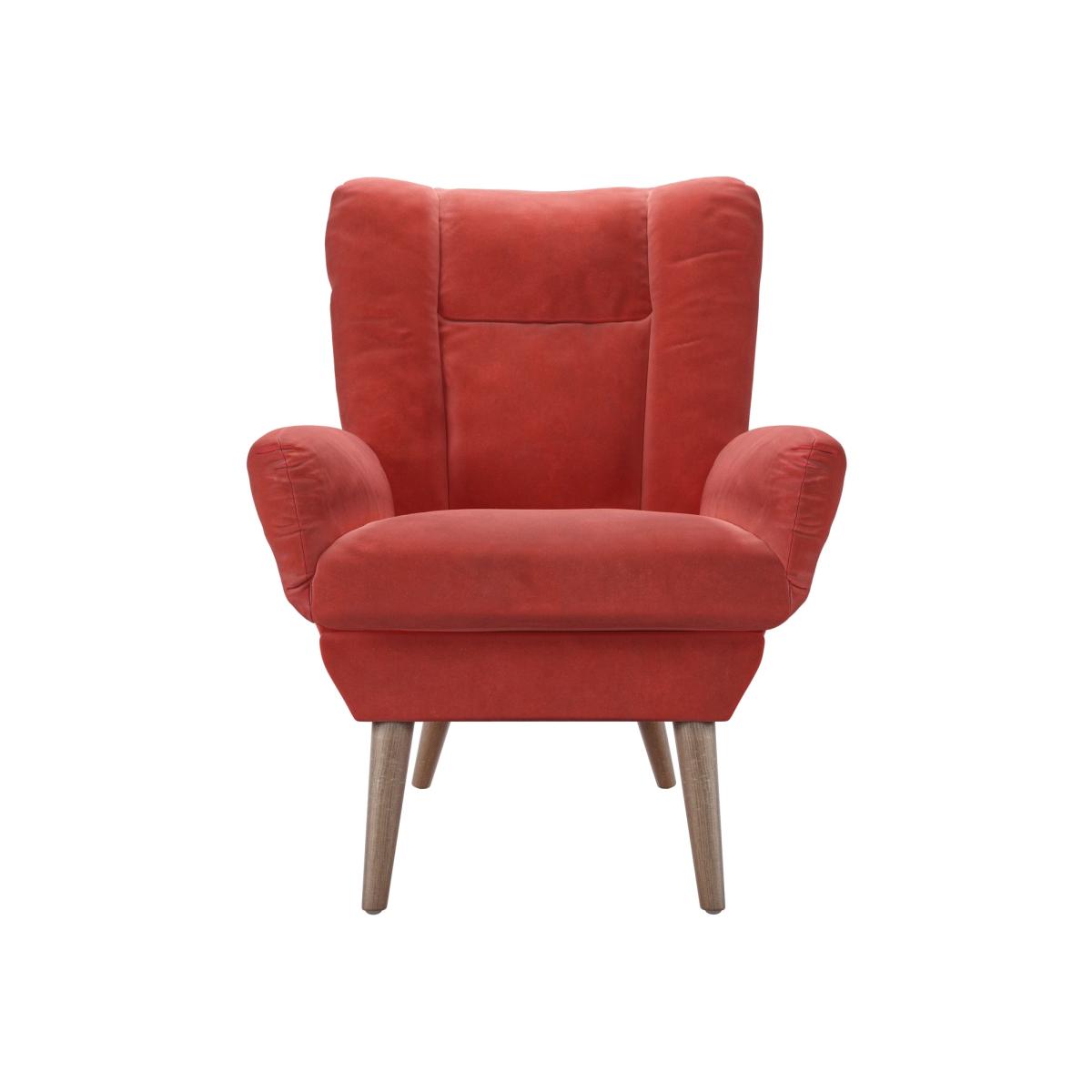 I love this armchair for its playful pop of colour and the rich texture of the smart velvet. The Wild Raspberry shade adds a lively, contemporary touch that can lift neutral interiors or complement other bold hues. It works particularly well in eclectic or modern scandi spaces, where its playful silhouette can be a focal point. For styling, pair it with soft cushions in contrasting fabrics or patterns to add depth, or keep it simple with monochrome tones for a more streamlined look. Practical tips include positioning it near a window to highlight its colour and texture, or in a cosy corner with a small side table for relaxing. The sturdy wooden legs also make it a flexible piece for various room layouts, offering both comfort and visual interest.