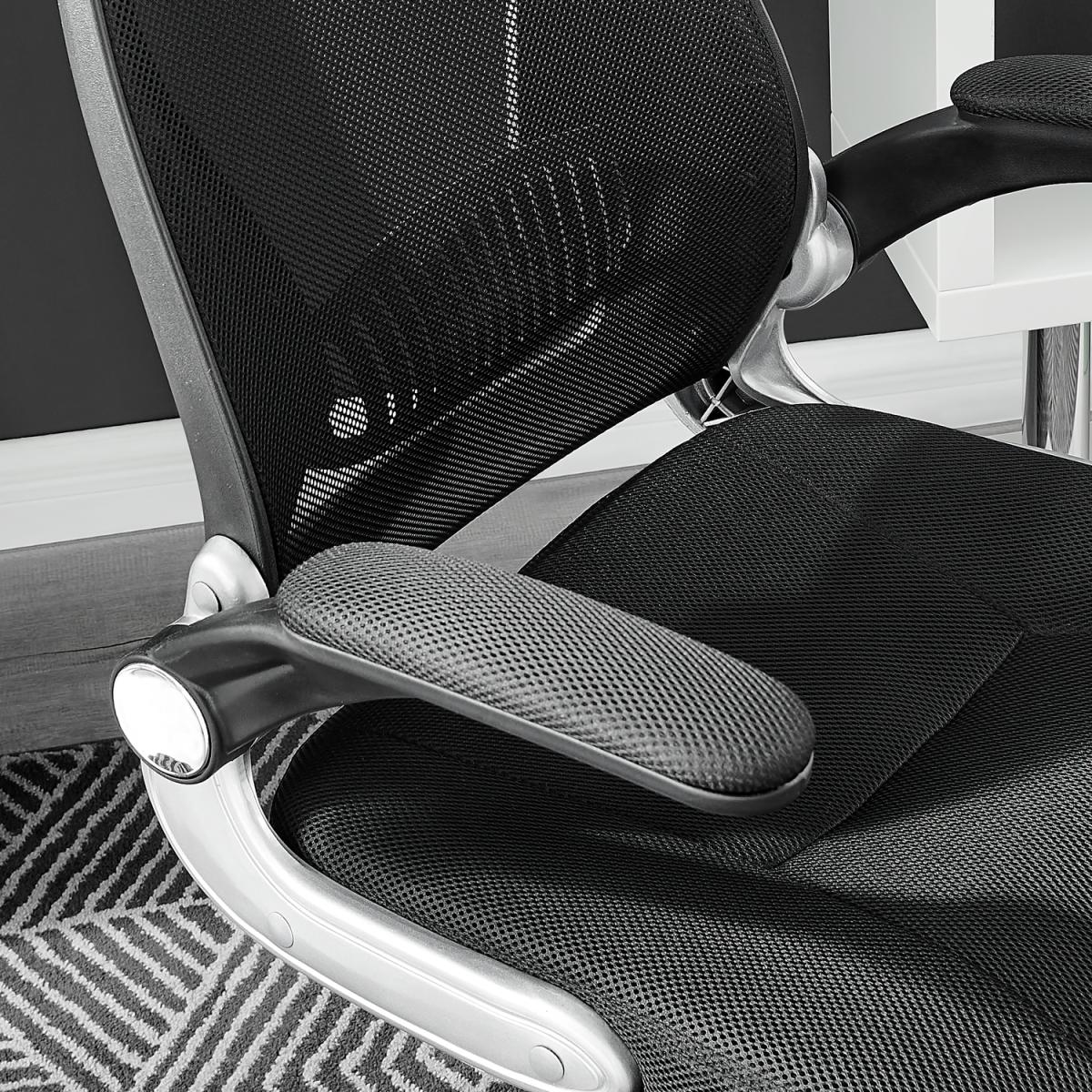 I love this high back black mesh office chair for its sleek, modern look and practical design. It works well in contemporary or minimalist interiors, where clean lines and neutral tones are key. Its mesh back not only adds an airy feel but also provides good ventilation-ideal for long working hours. For styling tips, pair it with a simple wooden or metal desk to keep the look fresh and uncluttered. You can also soften the space with textured accessories like a neutral-toned rug, a few indoor plants, or colourful stationery for a bit of personality. This chair offers both comfort and style, making it perfect for a smart, functional workspace.