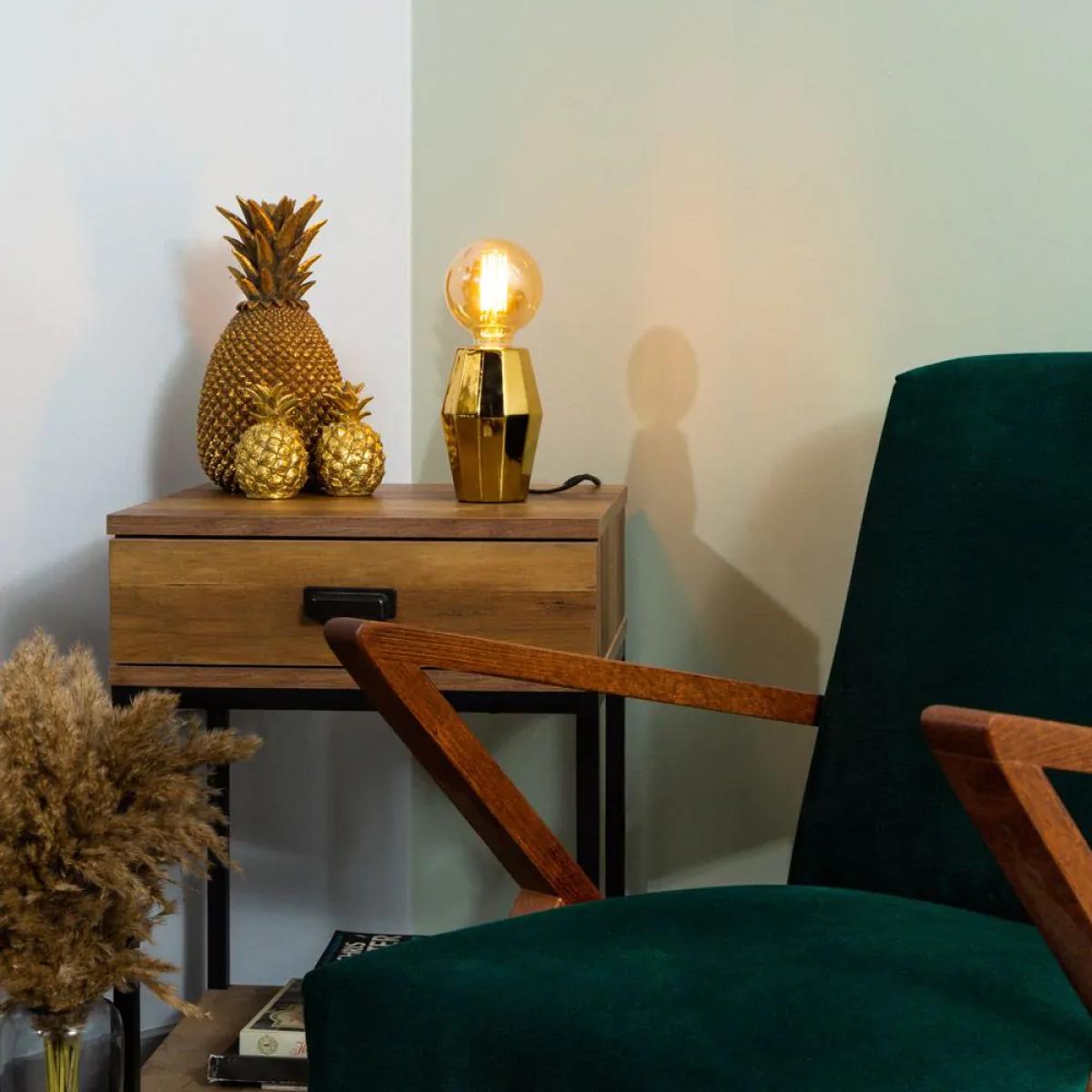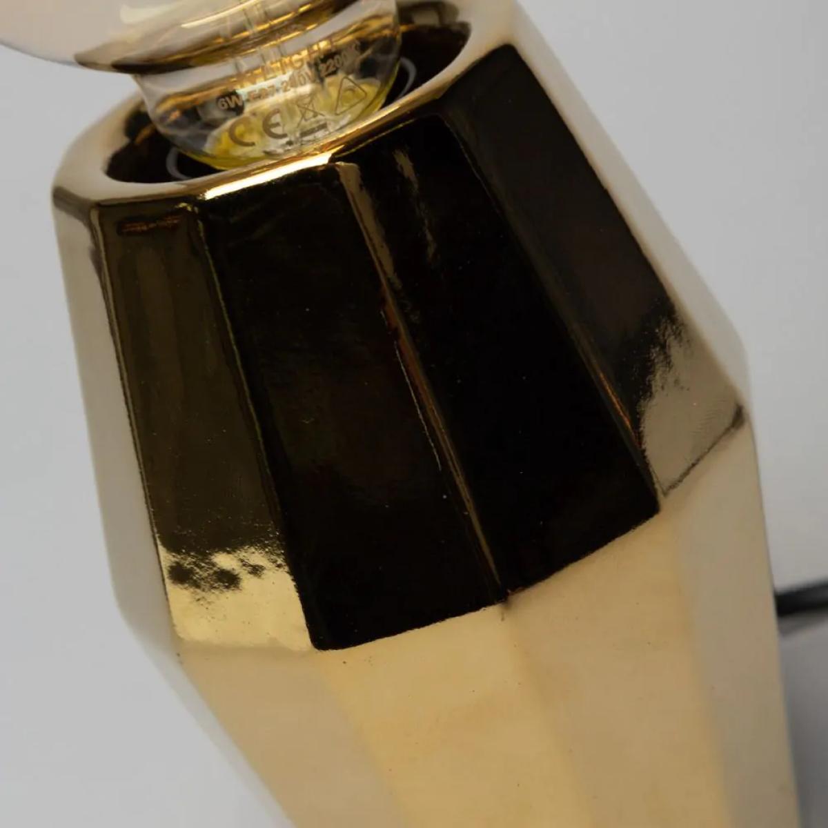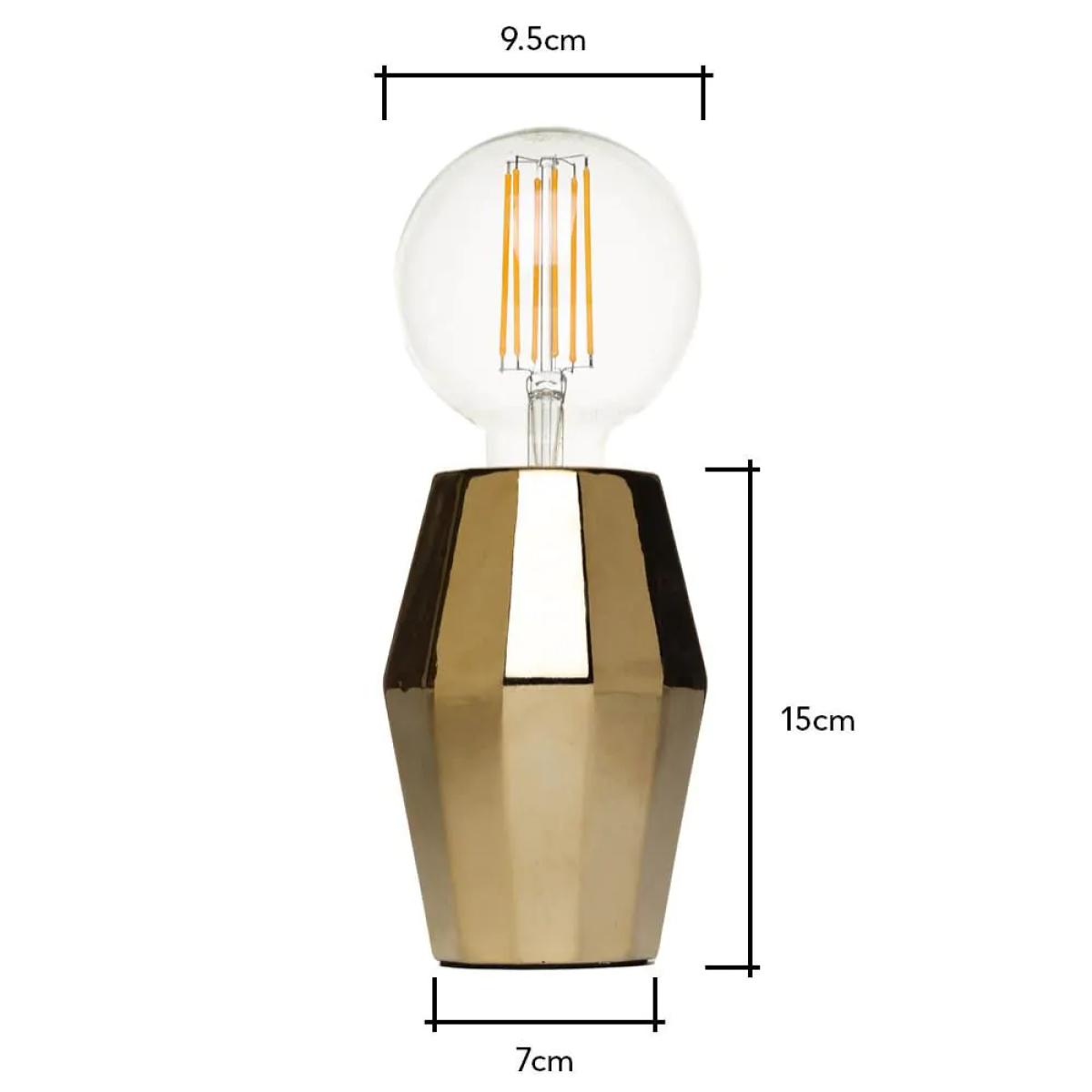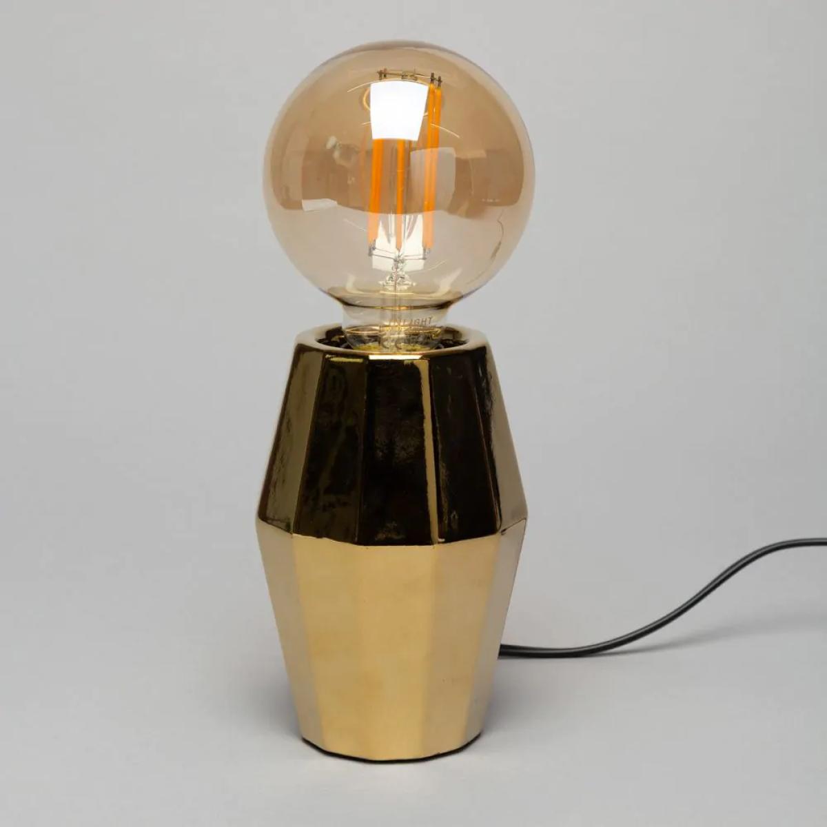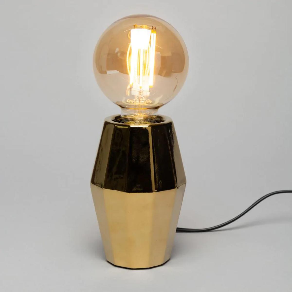 Add a luxurious element to your home with the stunning Elm Gold Geometric Base Table Lamp. The gold, colouring of this table lamps gives it an expensive, vintage feel while also adding a pop of colour to your space. The exposed bulb that sits on top provides a healthy illumination of light to the radiated across your space. Featuring an in-line switch for ease of use.