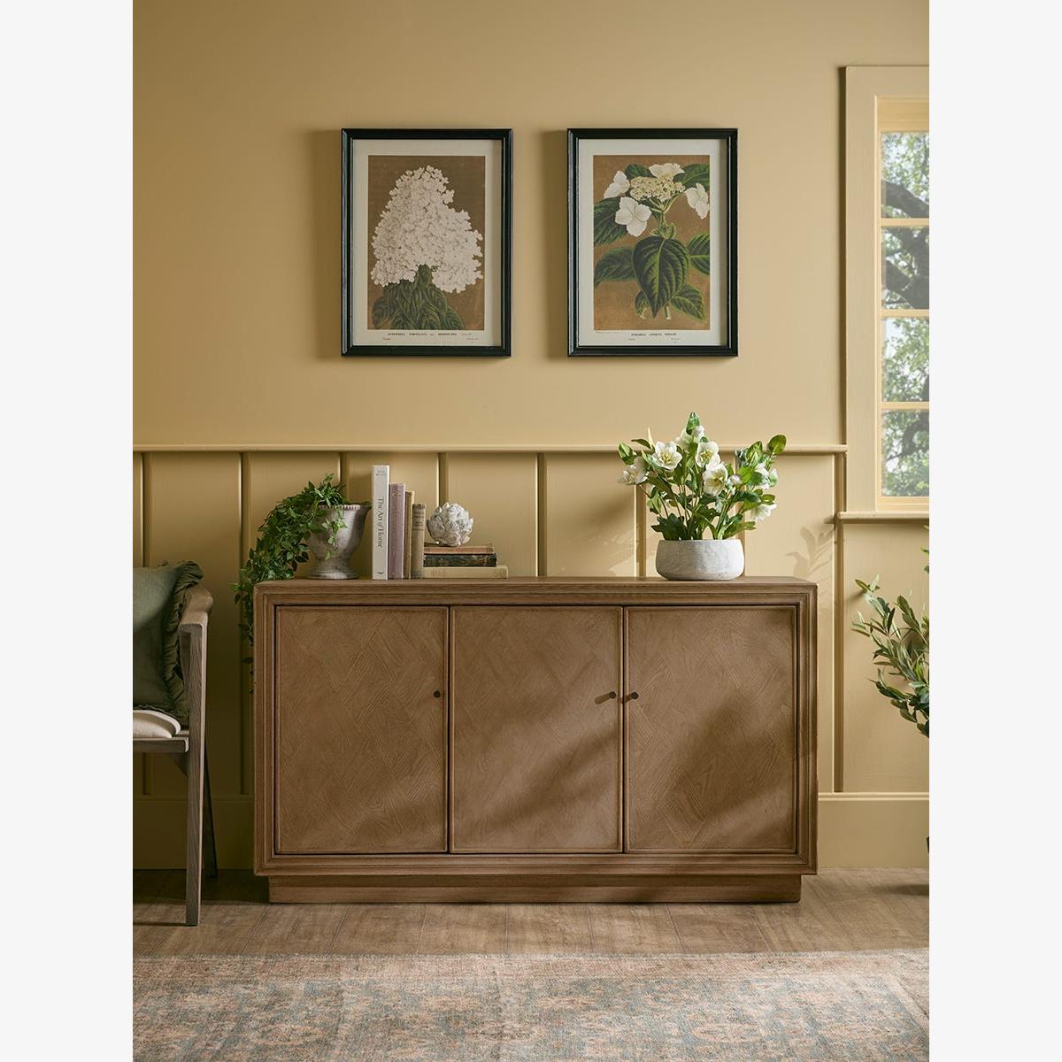 I love the elm parquet sideboard for its warm, natural timber finish that adds a sense of understated elegance to various interiors. It works particularly well in both traditional and contemporary schemes, offering versatility whether styled in a cosy living room or a dining space. For a more layered look, consider pairing it with ceramic vases, texturedware, or a small collection of books on top. Practical tips include using the top surface for organisation or display and keeping accessories minimal to highlight its beautiful grain. Its neutral tone makes it an easy foundation for adding colour through soft furnishings or artwork, and its generous storage helps keep clutter out of sight, making it as functional as it is stylish.