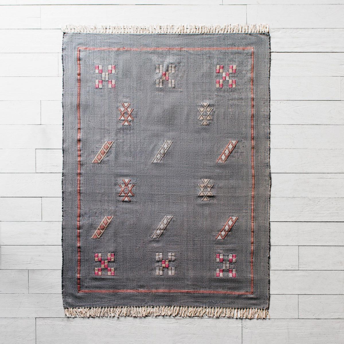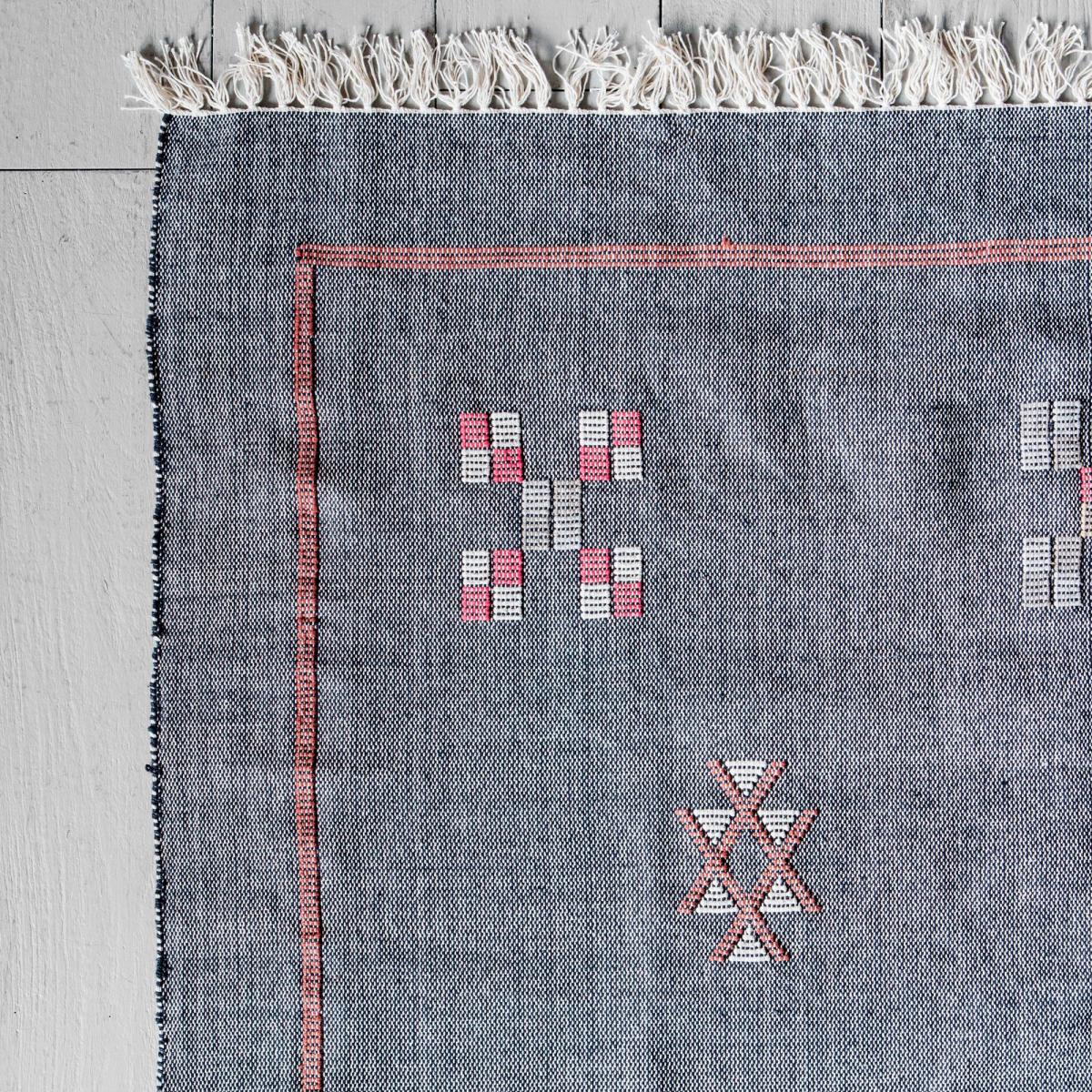 A textured cotton rug in a washed-denim blue that will sink comfortably into any home décor. Finished with hand-embroidered textile detailing and tasselled edging for a modern bohemian look.