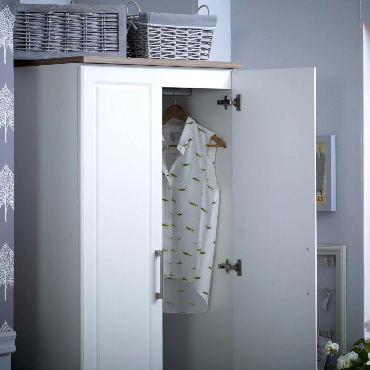 I’m a fan of the Elmley wardrobe because its four mirrored doors not only give you a full-length reflection but also bounce light around to make a room feel bigger. The panelled detailing and slim metal handles strike a balance between classic and contemporary, so it won’t date quickly. It works particularly well in Scandi-inspired or modern-farmhouse bedrooms, and even in a minimal, monochrome scheme where the mirrors become a statement. For a neat finish, use matching slimline hangers inside, add motion-sensor LED strips along the side panels for clear visibility, and style the top with a couple of woven baskets or a low-profile plant to keep clutter off the floor.