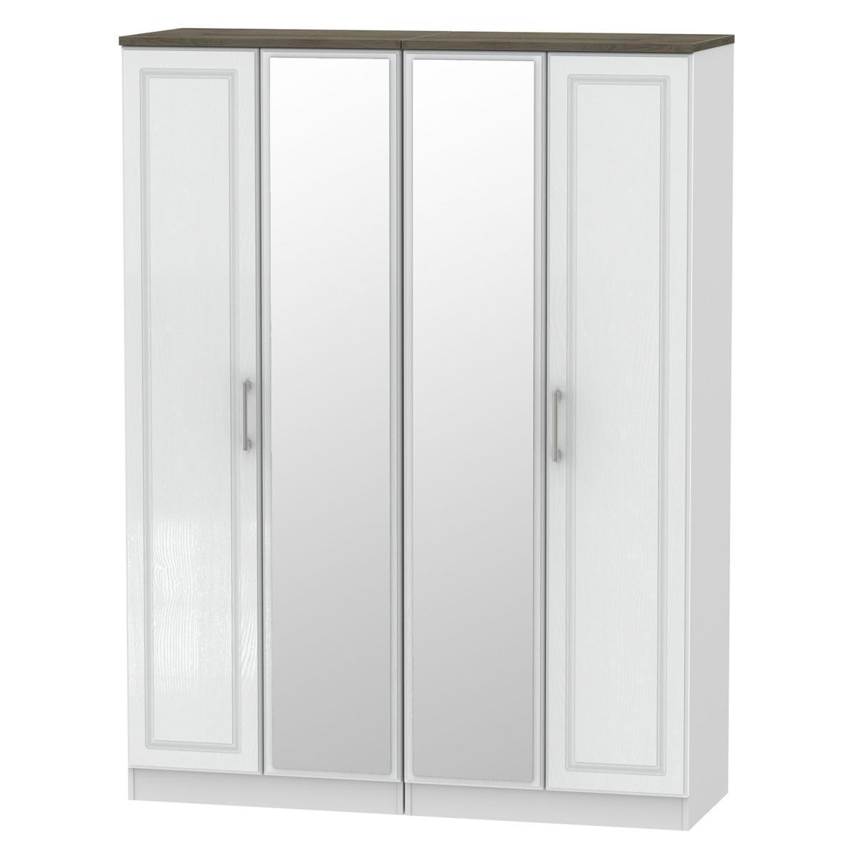 A beautiful addition to your bedroom, this Elmley Four-Door Mirrored Wardrobe provides you with plenty of space to store clothing. Made with two solid and two mirrored doors, this wardrobe is extremely spacious and is designed with a hanging rail for convenience. Manufactured from durable material, this wardrobe comes fully assembled making it perfect for every home.