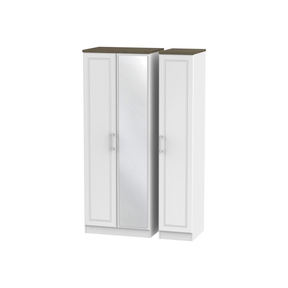 A beautiful addition to your bedroom, this Elmley Three Door Mirrored Wardrobe provides you with plenty of space to store clothing. Made with two solid and one mirrored door, this wardrobe is extremely spacious and is designed with a hanging rail for convenience. Manufactured from durable material, this wardrobe comes fully assembled making it perfect for every home.
