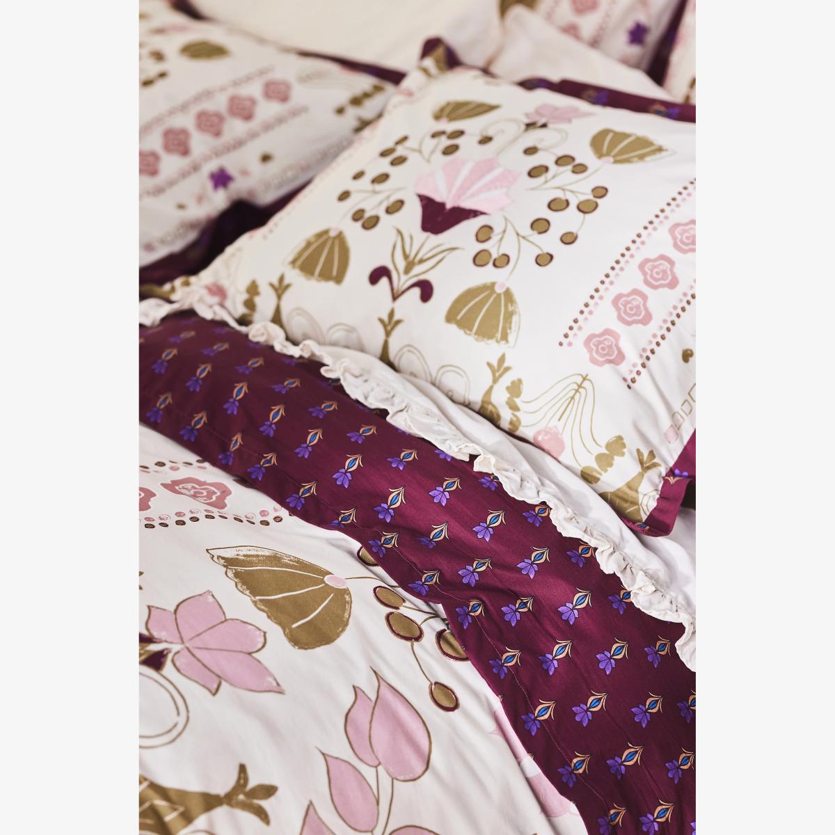 A blockprint-inspired floral design graces the Elodie collection with a lightweight and breathable finish for the most pleasant night's sleep. Just like your favourite buttondown, organic cotton percale is crisp and refreshingly cool. * 100% Organic Cotton Percale * Reversible printed design * Embroidered accents * Button closure * Machine wash cold; tumble dry low * Iron on warm setting if needed * Imported
