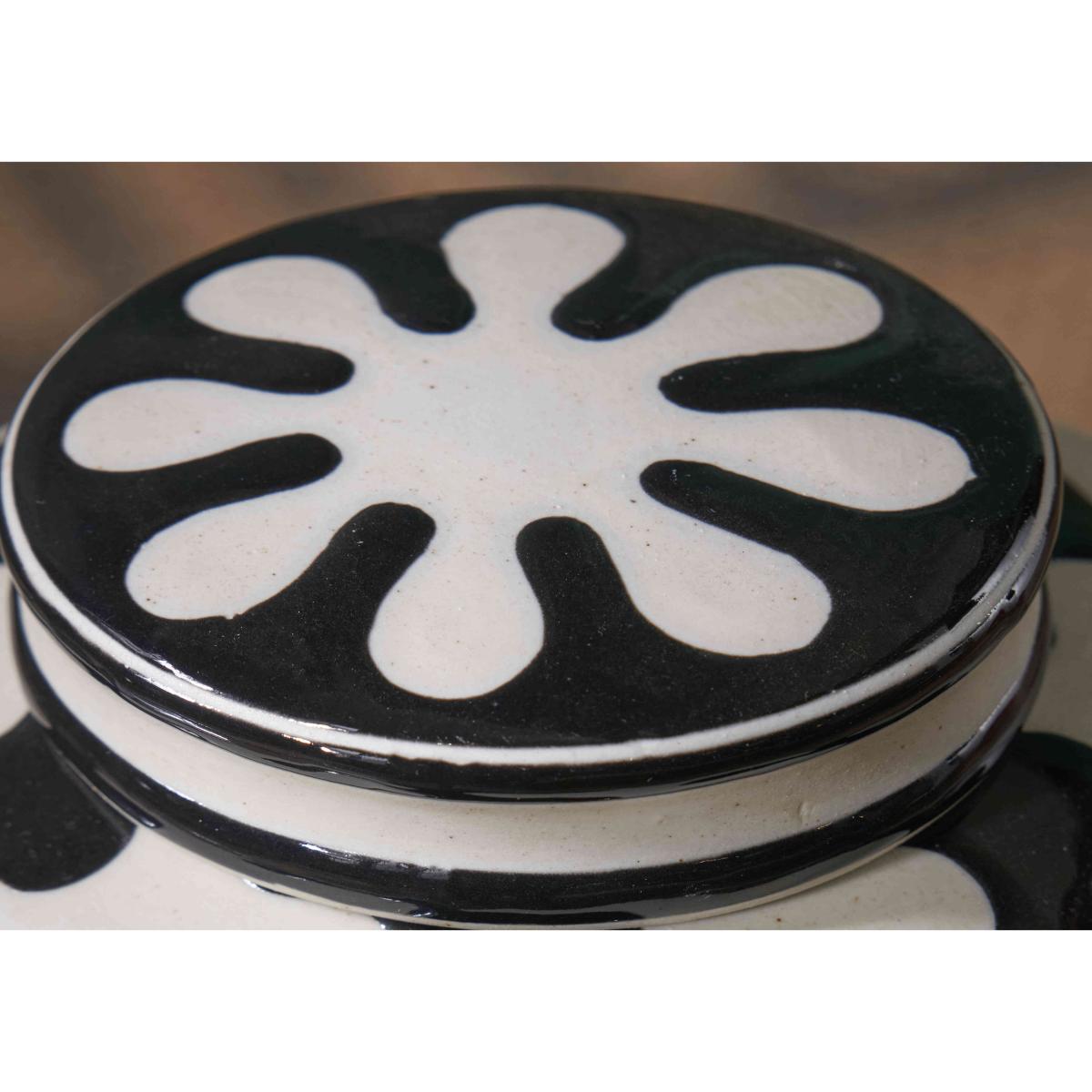 I really love the Elodie Ginger Jar for its bold, geometric pattern, which makes it a striking piece that adds visual interest to a variety of interiors. It works particularly well in modern or eclectic settings, where it can serve as a statement piece on a sideboard or mantel. Practical styling tips include using it with fresh or dried flowers for colour and texture, or leaving it empty as a sculptural accent. Its monochrome palette means it pairs effortlessly with other tones and patterns, making it versatile enough to slot into both minimal and more decorated spaces. Overall, it’s a functional yet decorative piece that can elevate the vibe of any room.