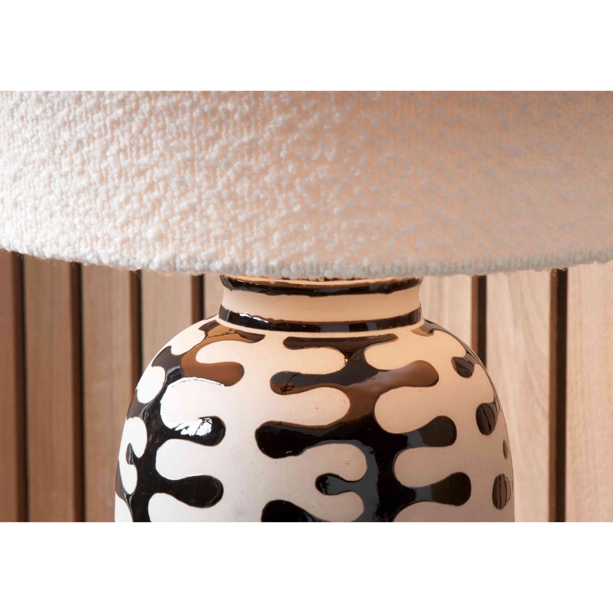 I love this lamp for its striking black-and-white pattern, which makes it a versatile piece that can work well in both modern and eclectic interiors. It's perfect for adding visual interest on sideboards, consoles, or bedside tables without overpowering the space. For styling tips, consider pairing it with minimalist decor to let the pattern stand out, or place it alongside textured accessories like ceramics or woven textiles for a layered look. Its neutral colours make it easy to incorporate into various colour schemes, and the sizeable shade ensures a warm, inviting glow that enhances any room's atmosphere.