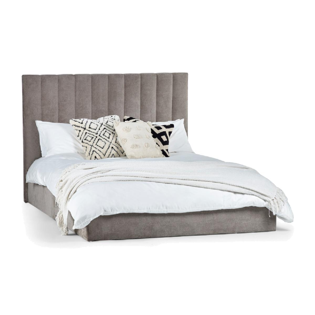 Transform your bedroom into a haven of luxury and style with this elegant bed, finished in a sophisticated chenille grey. The headboard features a modern vertical panel effect, making it a true centerpiece that draws the eye and sparks conversation. Plush padding enhances its visual appeal and invites you to lean back and indulge in cosy mornings or late-night reads. Designed for those who seek elegance without compromising on practicality, this bed arrives conveniently packaged for easy setup and complements various interior styles, turning your sleep sanctuary into a delightful escape! Simple assembly ensures youre ready to relax in no time.