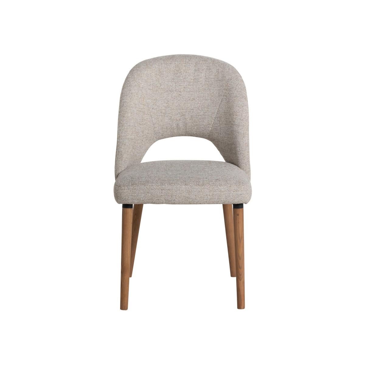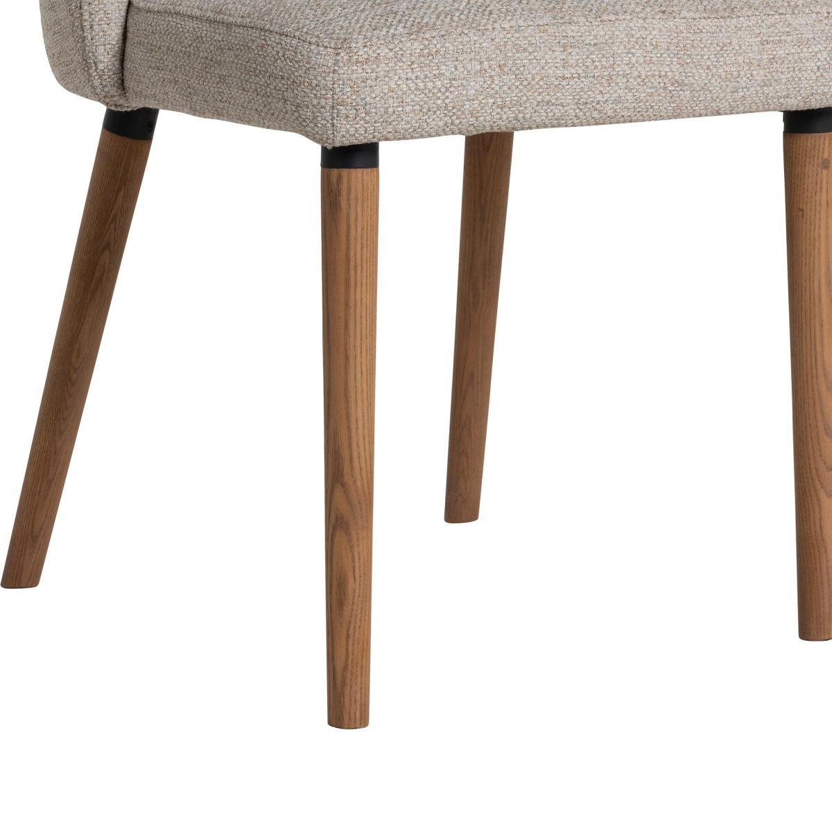 This Eloise neutral fabric dining chair with ash wood legs effortlessly combines comfort and timeless style. Upholstered in soft, durable fabric, the seat and back provide a cosy yet refined feel, enhanced by subtle stitching for added texture. The sturdy ash wood legs showcase a natural grain, offering durability and a warm, organic touch. Perfectly balanced between modern and classic design, this chair complements a wide range of dining spaces. Its neutral tone makes it versatile, blending seamlessly with various colour palettes while ensuring lasting elegance and functionality