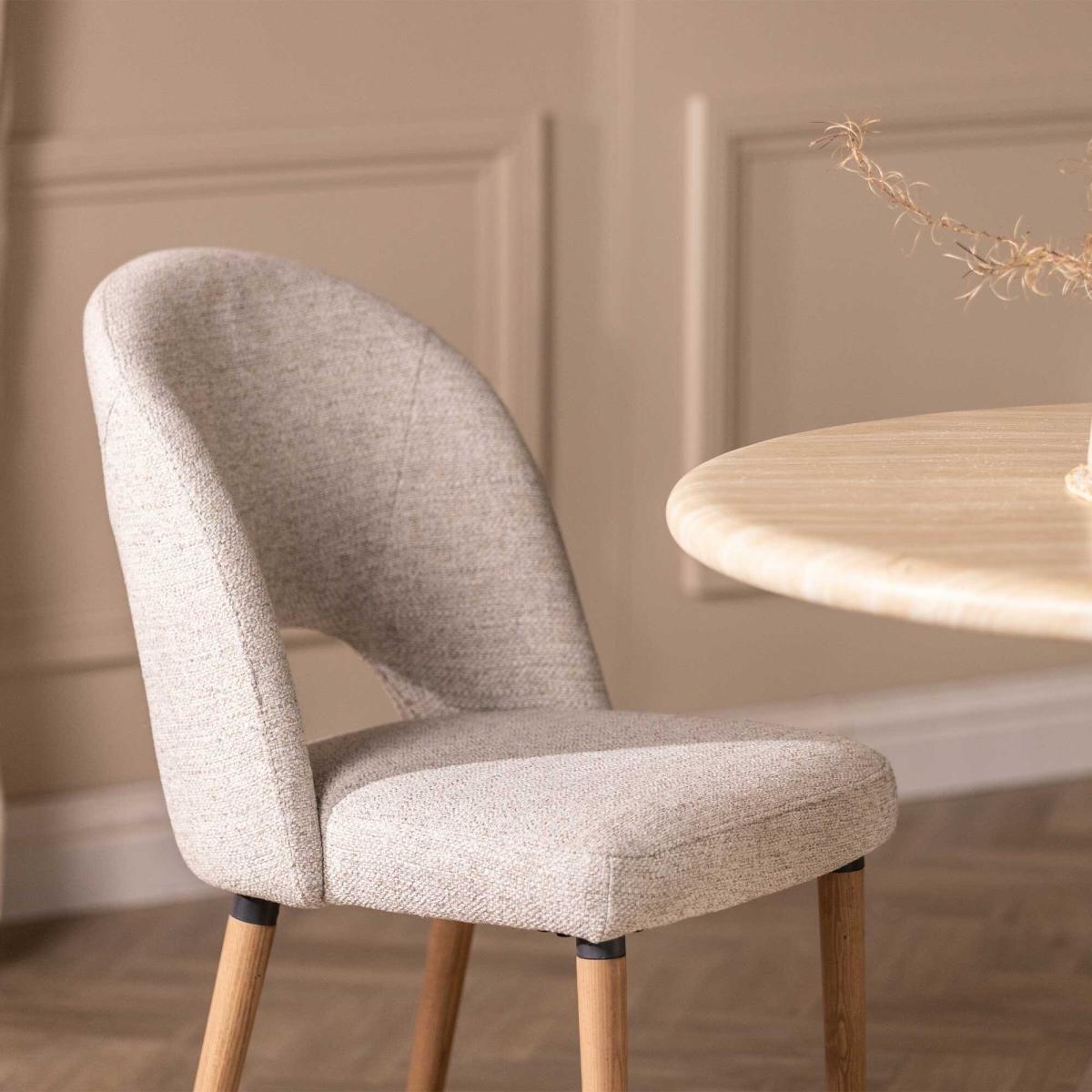 I’m a fan of the Eloise chair for its simple silhouette and quietly textured fabric - it slides effortlessly into both contemporary and Scandi-inspired schemes. The neutral upholstery and warm wooden legs mean it pairs well with pale oak or marble-topped tables, while its gentle curve and padded seat keep things comfortable for long dinners. To style, try grouping two at the ends of a reclaimed-wood table and mixing in a bench along one side for an informal look. Add a subtle patterned cushion or a leather seat pad to introduce contrast without overpowering the calm palette.
