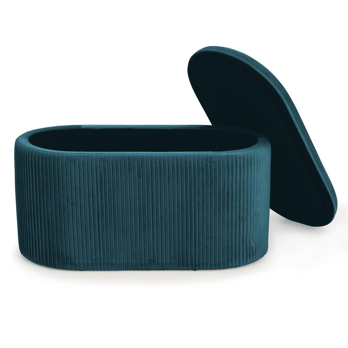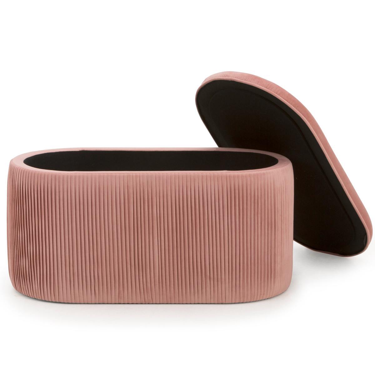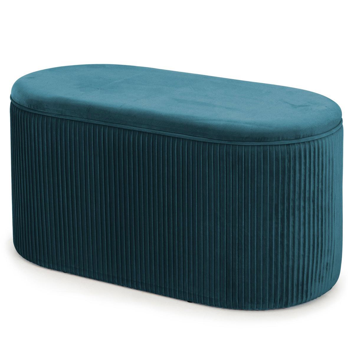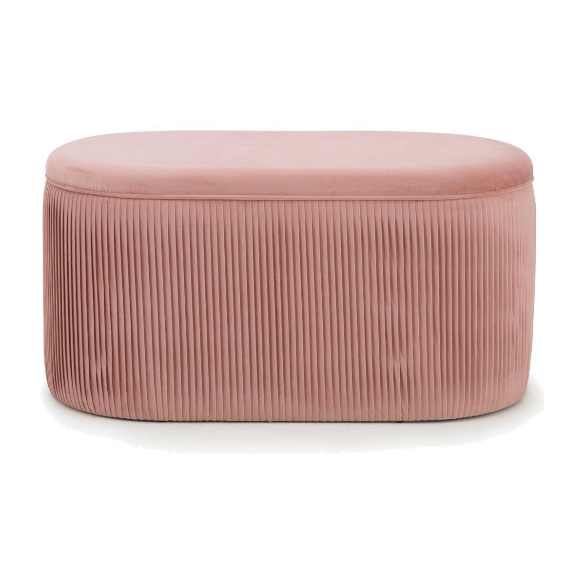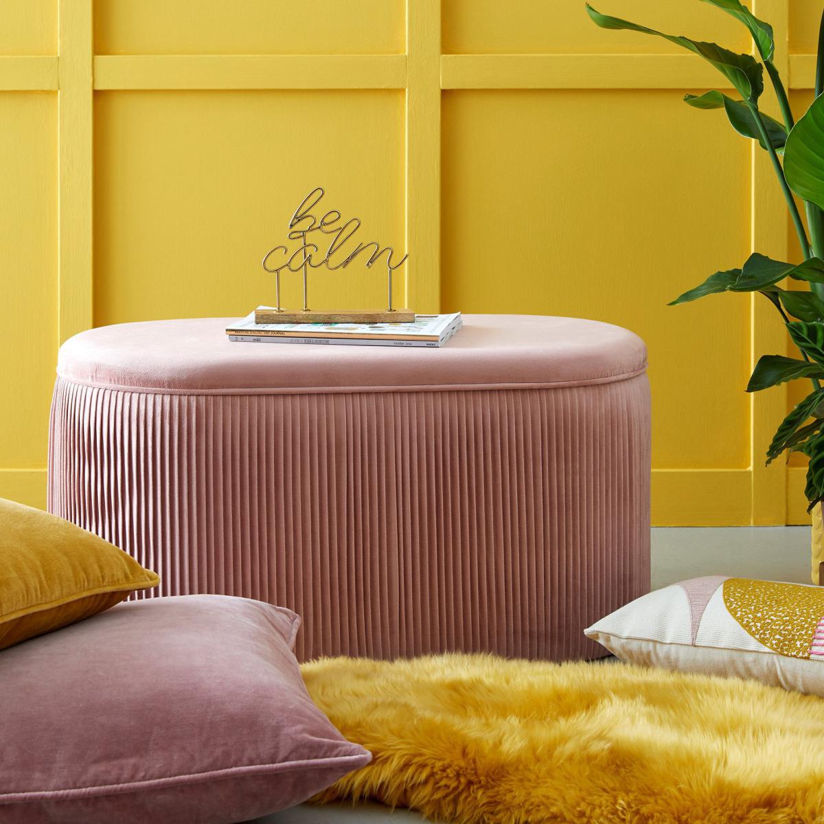 Upholstered in a soft velvet fabric, the Eloise storage ottoman features a glamorous pleated design and is available in a range of stunning colourways. Complete with a comfortable, foam-filled removable lid, this fully assembled ottoman offers generous storage space and would be a great addition to any space.