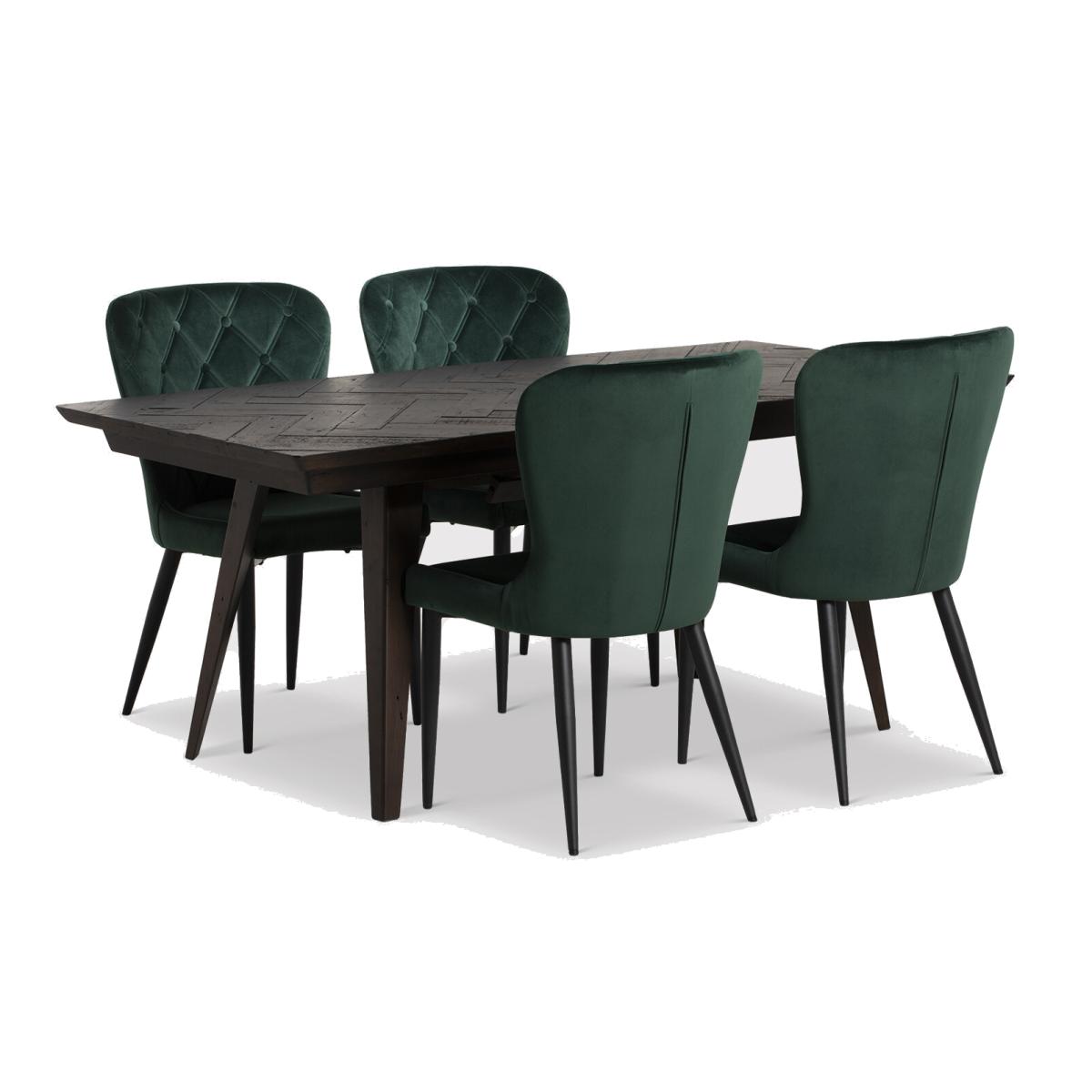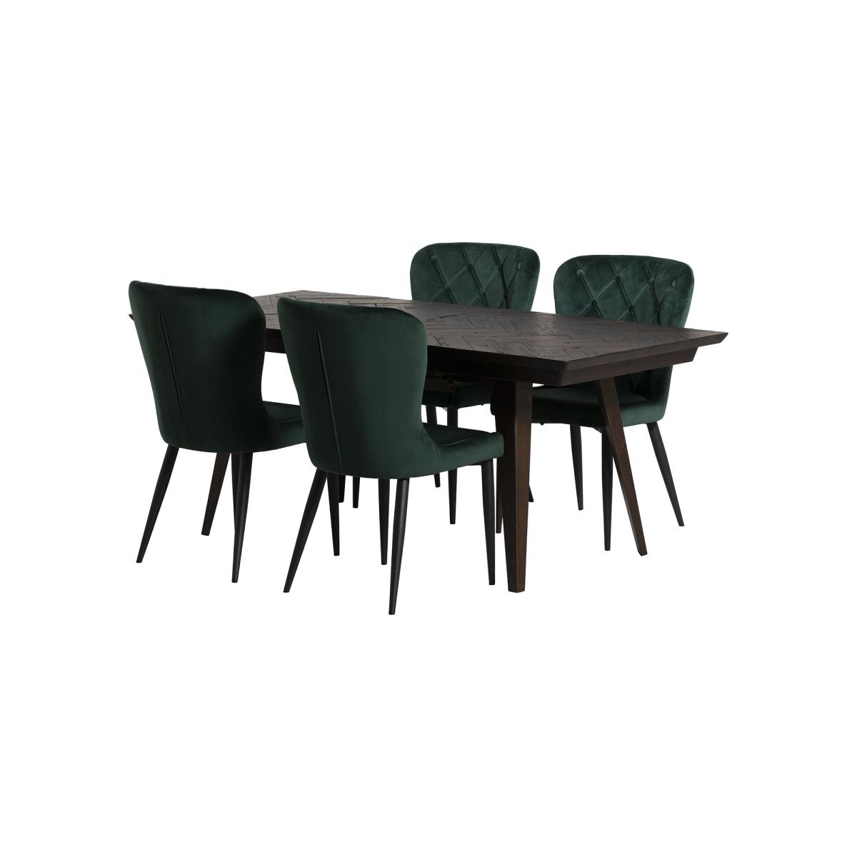 The Dining Table Is Crafted Using Sustainable Wood. The Dining Chairs Are Made From Faux Leather 100% Polyester. Elon Ext D. tbl X 4 Burnaby D. chr, Green Wood | Barker & Stonehouse