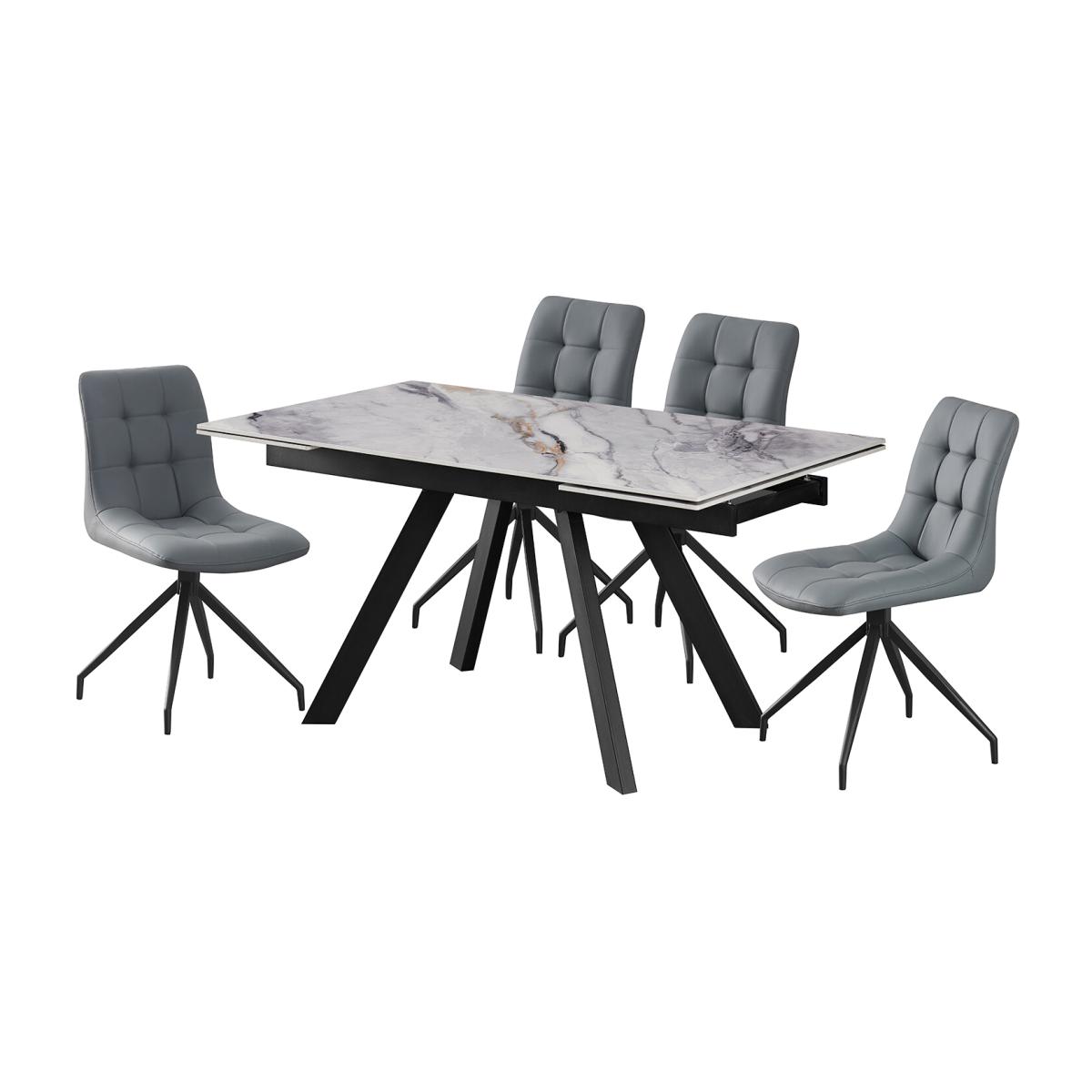 Dine in style on this Elora Marble Dining Table. Featuring a beautiful marble effect top, this dinner table will effortlessly infuse style and elegance into your space. Boasting an extendable design, it makes a great option for hosting dinner parties, gatherings, and special nights when you need extra space. Supported by a sturdy base, this dining table seamlessly blends modern sophistication with charm.