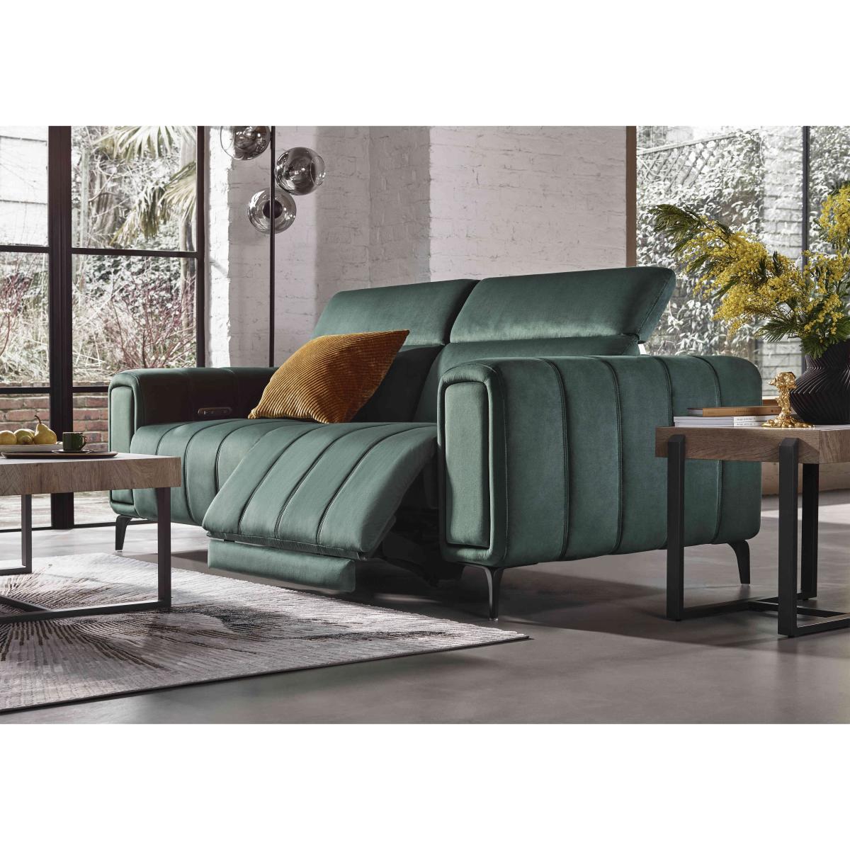 Why play it safe when you make a statement? Our exclusive Elphaba range is a fabulous synthesis of stunning details, ingenious design and exceptional comfort – pocket sprung seat cushioning comes as standard and you can also add power recliners and manual headrests. Showcasing a silhouette inspired by Art Deco style, Elphaba sofas and chairs are innovative as well as striking. In each sofa and chair arm you’ll find a pull-out storage compartment that makes sure all your relaxation essentials are close at hand. Available in both 100% leather and fabric, the handcrafted Elphaba range is exclusively available at Furniture Village. This sofa delivers the wow factor like no other. And with deep seats and pocket spring cushioning, it’s comfy as well as stylish. You’ll love the storage arms – and the fact that you can add power recliners. Why you’ll love it Everything about this sofa looks and feels fabulous. You’ll love its cool Art Deco-inspired lines, deep seats and secret storage. With optional power recliners and perfect-positioning manual headrests. The power model’s back recline and footrest work independently for personalised comfort. Pocket spring seat cushioning ensures that this sofa is as comfy as it is stylish. Plus each arm conceals a generously sized pull-out storage compartment. Metal legs. Upholstered in a choice of luxe fabrics and sophisticated colours. Striking stitching detail accentuates the sumptuous cushioning. Also available in 100% leather. Made by hand exclusively for Furniture Village. This 3-seater sofa with storage arms is part of our Elphaba range. What you need to know Medium comfort level. Seat suspension: sinuous springs. Seat cushioning: pocket spring, foam and Dacron. Seat cushioning is fixed. Back suspension: webbing Back cushioning: fibre. Back cushioning is fixed. Arm cushioning: foam and Dacron. Back and feet are removable for ease of access. USB charging is not available on the non-power recliner version of this sofa. Please allow time for the recliner mechanism to ease. Minor gaps are necessary to ensure ease of motion and may be exaggerated depending on floor type. Fixed seat and back cushions require smoothing and straightening regularly. To smooth and straighten fixed cushions, punch the back cushion’s top two corners and the seat cushion’s outer two corners, and pinch outwards. Some fabrics can show wear on areas of more use or in direct sunlight. Clean regularly using a soft brush or vacuum with the curtain attachment. Deal with any spills promptly. Professional cleaning advised for oil- and grease-based stains. Please read our upholstery care guide for more advice. Item code: ELPA3SP-STK-001
