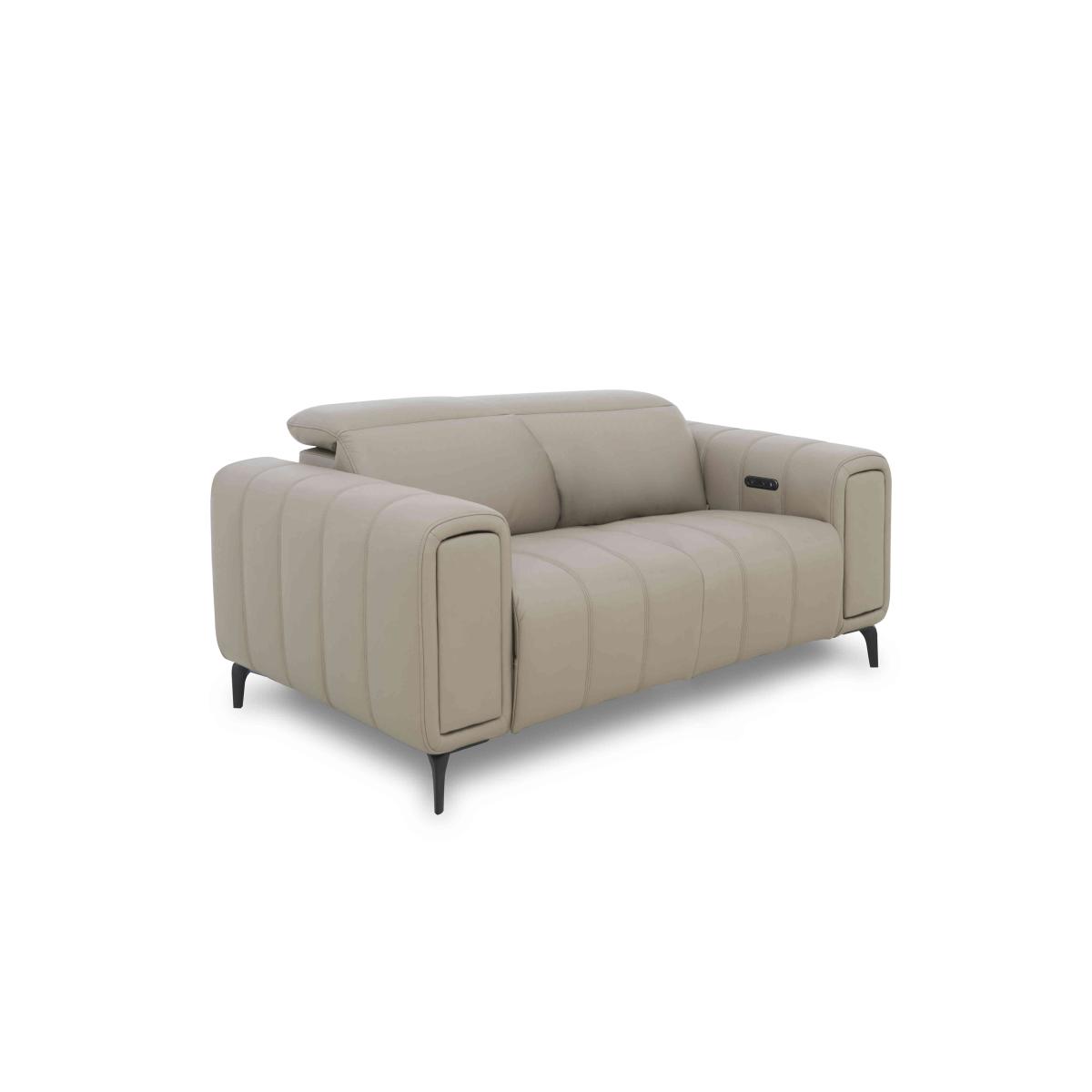 Why play it safe when you make a statement? Our exclusive Elphaba range is a fabulous synthesis of stunning details, ingenious design and exceptional comfort – pocket sprung seat cushioning comes as standard and you can also add power recliners and headrests. Showcasing a silhouette inspired by Art Deco style, Elphaba sofas and chairs are innovative as well as striking. In each sofa and chair arm you’ll find a pull-out storage compartment that makes sure all your relaxation essentials are close at hand. Available in both 100% leather and fabric, the handcrafted Elphaba range is exclusively available at Furniture Village. This stunning leather sofa channels vintage Art Deco style and delivers modern-day comfort and convenience in the form of pocket sprung seats and storage arms. Want more? Upgrade to the power model. Why you’ll love it Everything about this leather sofa looks and feels fabulous. You’ll love its cool Art Deco-inspired lines, deep seats and secret storage. With optional power recliners and perfect-positioning power headrests. The power model’s back recline and footrest work independently for personalised comfort. Pocket spring seat cushioning ensures that this sofa is as comfy as it is stylish. Plus each arm conceals a generously sized pull-out storage compartment. Metal legs. Upholstered in a choice of 100% leather grades and colours. Striking stitching detail accentuates the sumptuous cushioning. Made by hand exclusively for Furniture Village. This 2-seater leather sofa with storage arms is part of our Elphaba range. What you need to know Medium comfort level. Seat suspension: sinuous springs. Seat cushioning: pocket spring, foam and Dacron. Seat cushioning is fixed. Back suspension: webbing Back cushioning: fibre. Back cushioning is fixed. Arm cushioning: foam and Dacron. Back and feet are removable for ease of access. USB charging is not available on the non-power recliner version of this sofa. Please allow time for the recliner mechanism to ease. Minor gaps are necessary to ensure ease of motion and may be exaggerated depending on floor type. Fixed seat and back cushions require smoothing and straightening regularly. To smooth and straighten fixed cushions, punch the back cushion’s top two corners and the seat cushion’s outer two corners, and pinch outwards. Leather has unique marks and characteristics with variation in colour and texture. Leather softens with use. Smoothing the tops of leather cushions prevents signs of visual comfort. Please read our upholstery care guide for more advice.