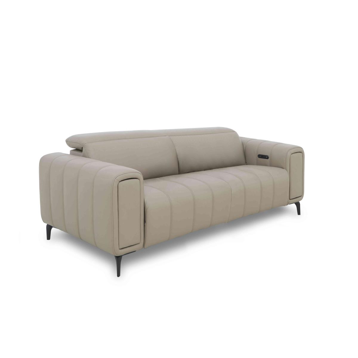 Why play it safe when you make a statement? Our exclusive Elphaba range is a fabulous synthesis of stunning details, ingenious design and exceptional comfort – pocket sprung seat cushioning comes as standard and you can also add power recliners and headrests. Showcasing a silhouette inspired by Art Deco style, Elphaba sofas and chairs are innovative as well as striking. In each sofa and chair arm you’ll find a pull-out storage compartment that makes sure all your relaxation essentials are close at hand. Available in both 100% leather and fabric, the handcrafted Elphaba range is exclusively available at Furniture Village. Sumptuous comfort, striking style and hidden storage in the arms – this fabulous leather sofa has the wow factor and delivers comfort and convenience too. Also available with power recliners. Why you’ll love it Everything about this leather sofa looks and feels fabulous. You’ll love its cool Art Deco-inspired lines, deep seats and secret storage. With optional power recliners and perfect-positioning power headrests. The power model’s back recline and footrest work independently for personalised comfort. Pocket spring seat cushioning ensures that this sofa is as comfy as it is stylish. Plus each arm conceals a generously sized pull-out storage compartment. Metal legs. Upholstered in a choice of 100% leather grades and colours. Striking stitching detail accentuates the sumptuous cushioning. Made by hand exclusively for Furniture Village. This 3-seater leather sofa with storage arms is part of our Elphaba range. What you need to know Medium comfort level. Seat suspension: sinuous springs. Seat cushioning: pocket spring, foam and Dacron. Seat cushioning is fixed. Back suspension: webbing Back cushioning: fibre. Back cushioning is fixed. Arm cushioning: foam and Dacron. Back and feet are removable for ease of access. USB charging is not available on the non-power recliner version of this sofa. Please allow time for the recliner mechanism to ease. Minor gaps are necessary to ensure ease of motion and may be exaggerated depending on floor type. Fixed seat and back cushions require smoothing and straightening regularly. To smooth and straighten fixed cushions, punch the back cushion’s top two corners and the seat cushion’s outer two corners, and pinch outwards. Leather has unique marks and characteristics with variation in colour and texture. Leather softens with use. Smoothing the tops of leather cushions prevents signs of visual comfort. Please read our upholstery care guide for more advice.