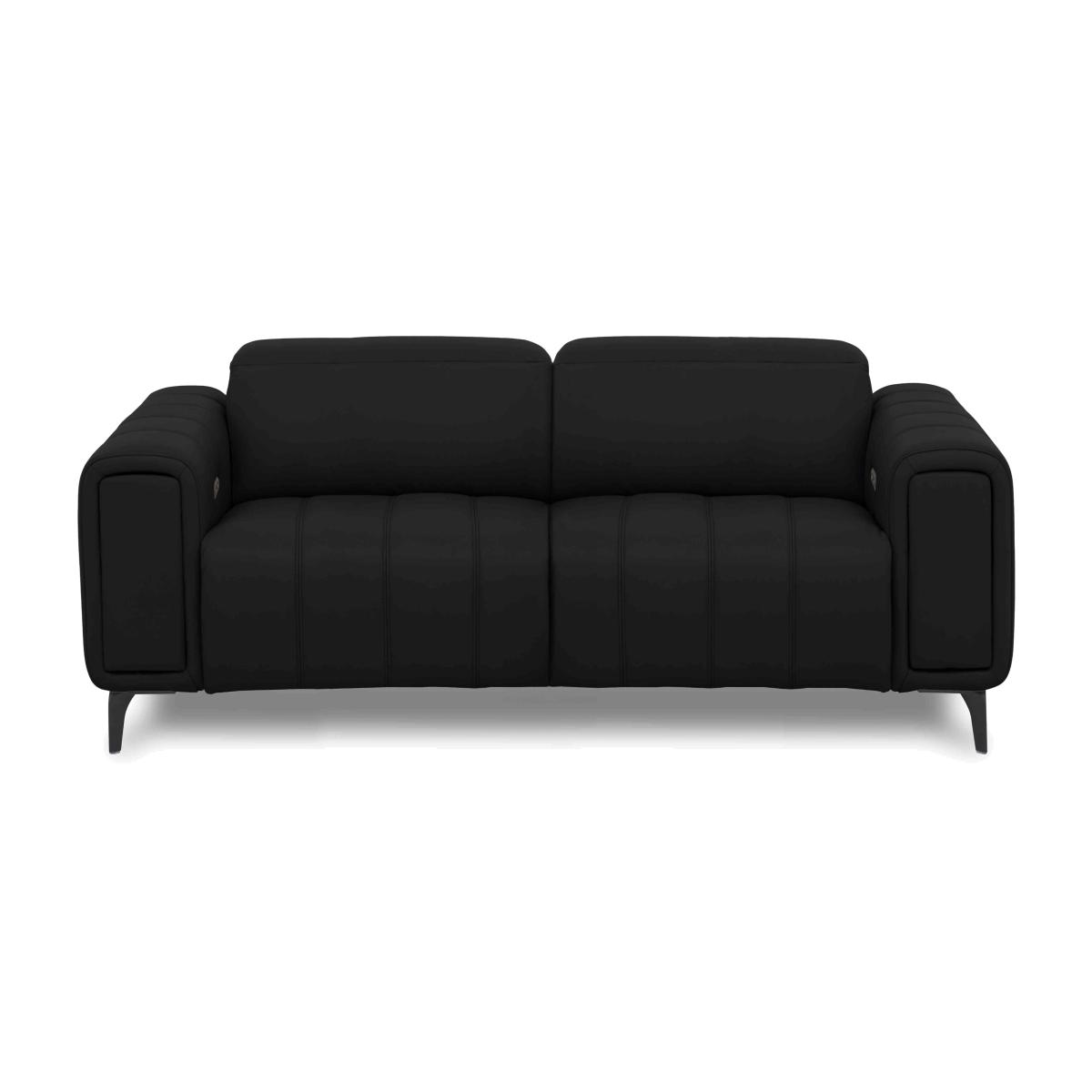 Why play it safe when you make a statement? Our exclusive Elphaba range is a fabulous synthesis of stunning details, ingenious design and exceptional comfort – pocket sprung seat cushioning comes as standard and you can also add power recliners and headrests. Showcasing a silhouette inspired by Art Deco style, Elphaba sofas and chairs are innovative as well as striking. In each sofa and chair arm you’ll find a pull-out storage compartment that makes sure all your relaxation essentials are close at hand. Available in both 100% leather and fabric, the handcrafted Elphaba range is exclusively available at Furniture Village. Sumptuous comfort, striking style and hidden storage in the arms – this fabulous leather sofa has the wow factor and delivers comfort and convenience too. Also available with power recliners. Why you’ll love it Everything about this leather sofa looks and feels fabulous. You’ll love its cool Art Deco-inspired lines, deep seats and secret storage. With optional power recliners and perfect-positioning power headrests. The power model’s back recline and footrest work independently for personalised comfort. Pocket spring seat cushioning ensures that this sofa is as comfy as it is stylish. Plus each arm conceals a generously sized pull-out storage compartment. Metal legs. Upholstered in a choice of 100% leather grades and colours. Striking stitching detail accentuates the sumptuous cushioning. Made by hand exclusively for Furniture Village. This 3-seater leather sofa with storage arms is part of our Elphaba range. What you need to know Medium comfort level. Seat suspension: sinuous springs. Seat cushioning: pocket spring, foam and Dacron. Seat cushioning is fixed. Back suspension: webbing Back cushioning: fibre. Back cushioning is fixed. Arm cushioning: foam and Dacron. Back and feet are removable for ease of access. USB charging is not available on the non-power recliner version of this sofa. Please allow time for the recliner mechanism to ease. Minor gaps are necessary to ensure ease of motion and may be exaggerated depending on floor type. Fixed seat and back cushions require smoothing and straightening regularly. To smooth and straighten fixed cushions, punch the back cushion’s top two corners and the seat cushion’s outer two corners, and pinch outwards. Leather has unique marks and characteristics with variation in colour and texture. Leather softens with use. Smoothing the tops of leather cushions prevents signs of visual comfort. Please read our upholstery care guide for more advice.