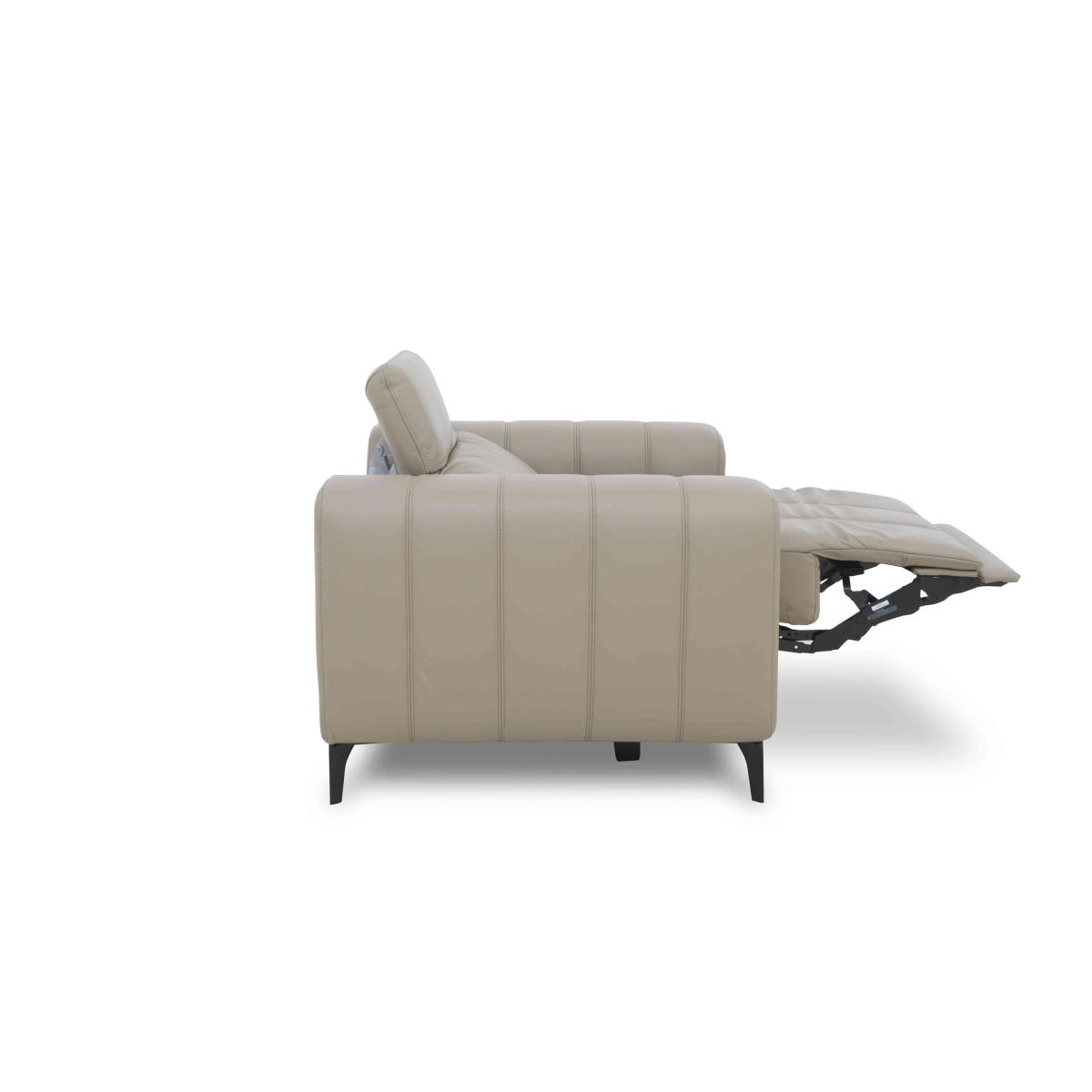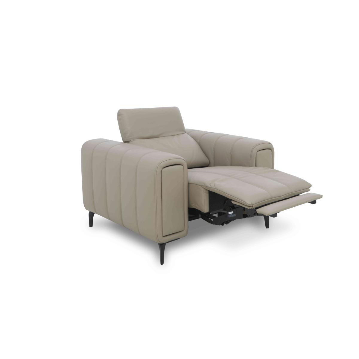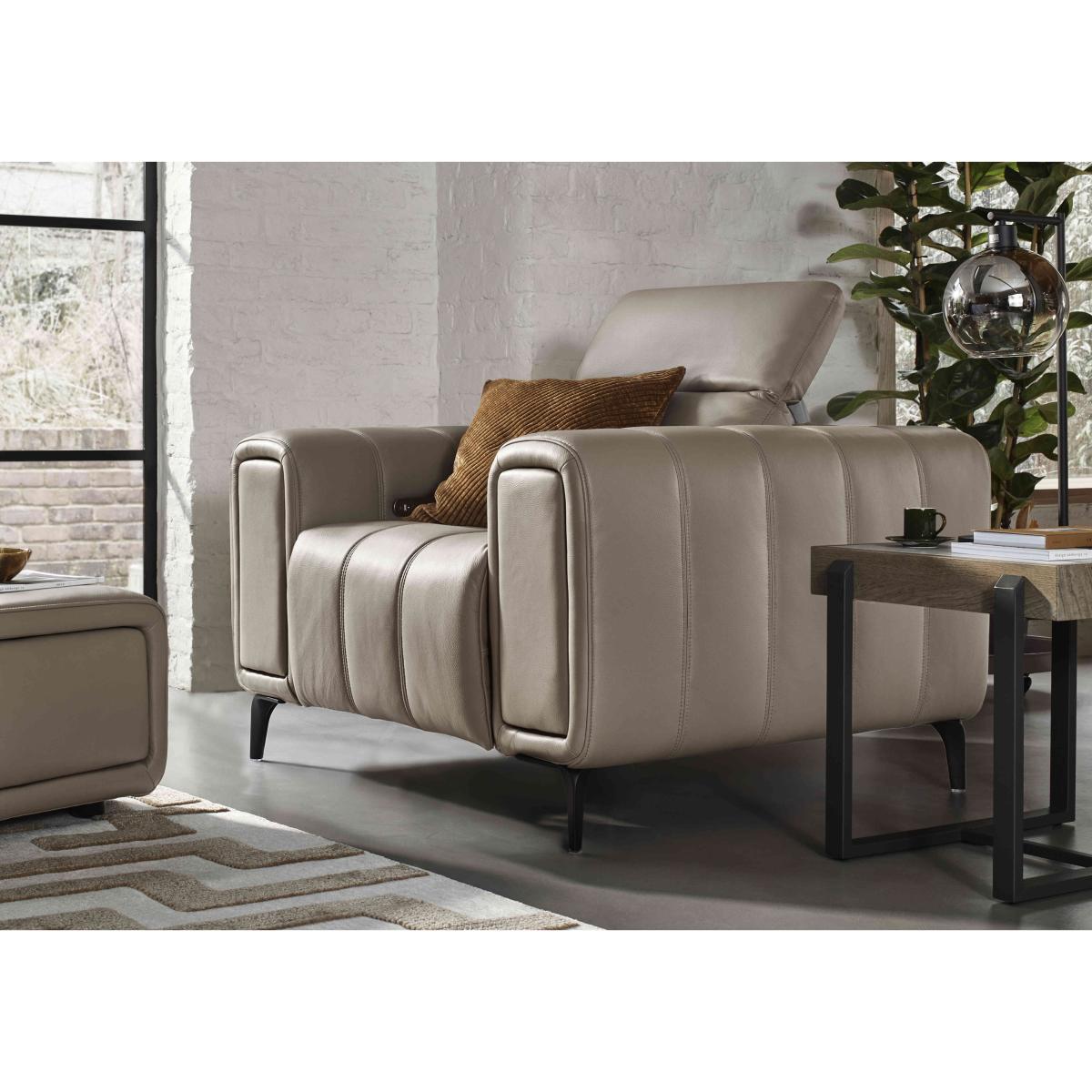 Why play it safe when you make a statement? Our exclusive Elphaba range is a fabulous synthesis of stunning details, ingenious design and exceptional comfort – pocket sprung seat cushioning comes as standard and you can also add power recliners and headrests. Showcasing a silhouette inspired by Art Deco style, Elphaba sofas and chairs are innovative as well as striking. In each sofa and chair arm you’ll find a pull-out storage compartment that makes sure all your relaxation essentials are close at hand. Available in both 100% leather and fabric, the handcrafted Elphaba range is exclusively available at Furniture Village. This leather armchair with optional power recliner is beyond stylish. We love its Art Deco-inspired flair, sumptuous cushioning, hidden storage and 100% leather upholstery. Why you’ll love it Everything about this leather armchair looks and feels fabulous. You’ll love its cool Art Deco-inspired lines, deep seats and secret storage. With optional power recliners and perfect-positioning power headrests. The power model’s back recline and footrest work independently for personalised comfort. Pocket spring seat cushioning ensures that this chair is as comfy as it is stylish. Plus each arm conceals a generously sized pull-out storage compartment. Metal legs. Upholstered in a choice of 100% leather grades and colours. Striking stitching detail accentuates the sumptuous cushioning. Made by hand exclusively for Furniture Village. This leather chair with storage arms is part of our Elphaba range. What you need to know Medium comfort level. Seat suspension: sinuous springs. Seat cushioning: pocket spring, foam and Dacron. Seat cushioning is fixed. Back suspension: webbing Back cushioning: fibre. Back cushioning is fixed. Arm cushioning: foam and Dacron. Back and feet are removable for ease of access. USB charging is not available on the non-power recliner version of this armchair. Please allow time for the recliner mechanism to ease. Minor gaps are necessary to ensure ease of motion and may be exaggerated depending on floor type. Fixed seat and back cushions require smoothing and straightening regularly. To smooth and straighten fixed cushions, punch the back cushion’s top two corners and the seat cushion’s outer two corners, and pinch outwards. Leather has unique marks and characteristics with variation in colour and texture. Leather softens with use. Smoothing the tops of leather cushions prevents signs of visual comfort. Please read our upholstery care guide for more advice.