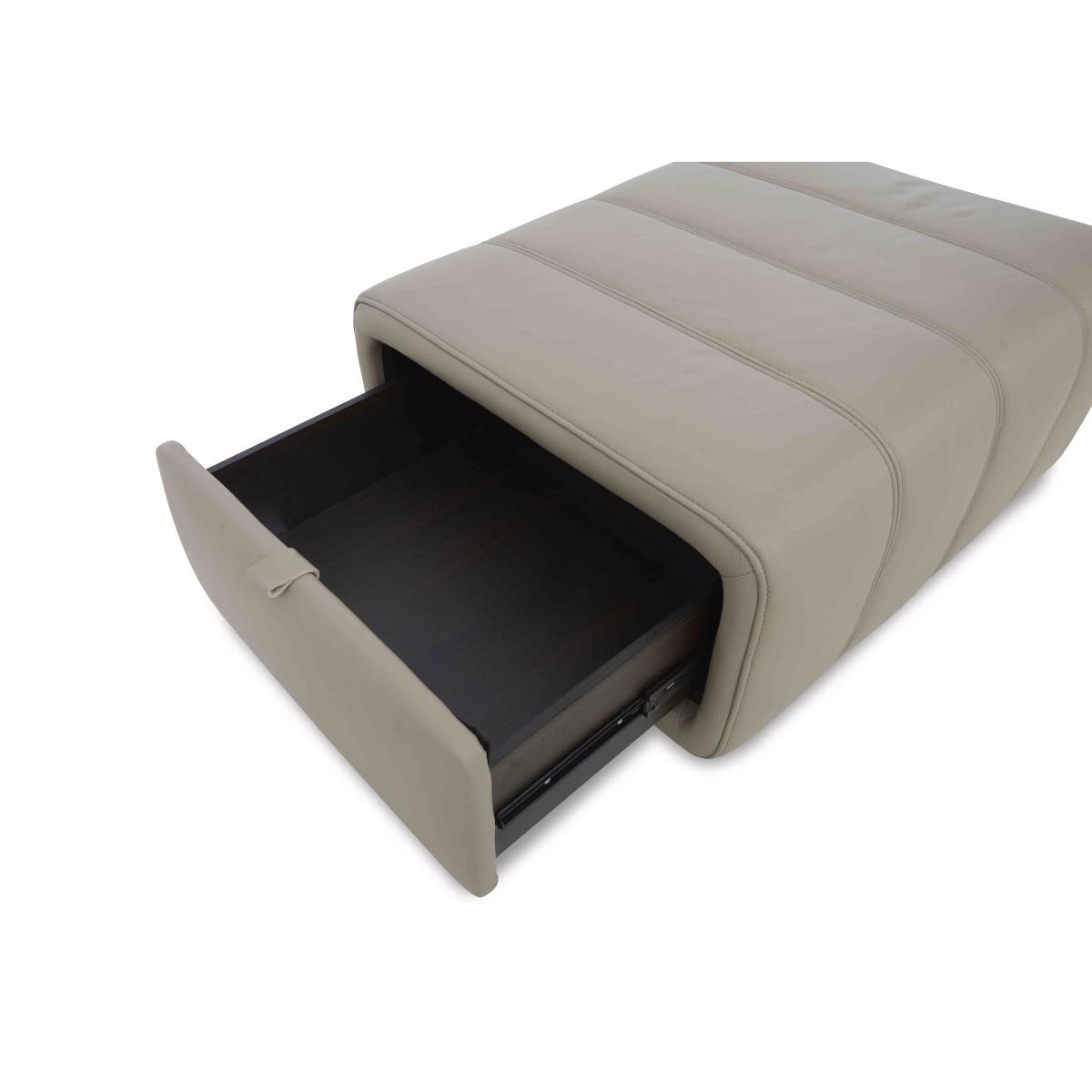 Why play it safe when you make a statement? Our exclusive Elphaba range is a fabulous synthesis of stunning details, ingenious design and exceptional comfort – pocket sprung seat cushioning comes as standard and you can also add power recliners and headrests. Showcasing a silhouette inspired by Art Deco style, Elphaba sofas and chairs are innovative as well as striking. In each sofa and chair arm you’ll find a pull-out storage compartment that makes sure all your relaxation essentials are close at hand. Available in both 100% leather and fabric, the handcrafted Elphaba range is exclusively available at Furniture Village. This striking leather footstool hides a secret – a user-friendly storage compartment that pulls out like a drawer. Stylish stitching accentuates the all-over cushioning. Why you’ll love it Everything about this leather storage footstool looks and feels fabulous. You’ll love its cool Art Deco-inspired lines and hidden storage. Such a versatile piece – it makes an excellent extra seat or even a coffee table. The storage compartment handily pulls out like a drawer. Upholstered in a choice of 100% leather grades and colours. Striking stitching detail accentuates the sumptuous cushioning. Made by hand exclusively for Furniture Village. This leather storage footstool is part of our Elphaba range. What you need to know Cushioning: foam. Leather has unique marks and characteristics with variation in colour and texture. Leather softens with use. Smoothing the tops of leather cushions prevents signs of visual comfort. Please read our upholstery care guide for more advice.