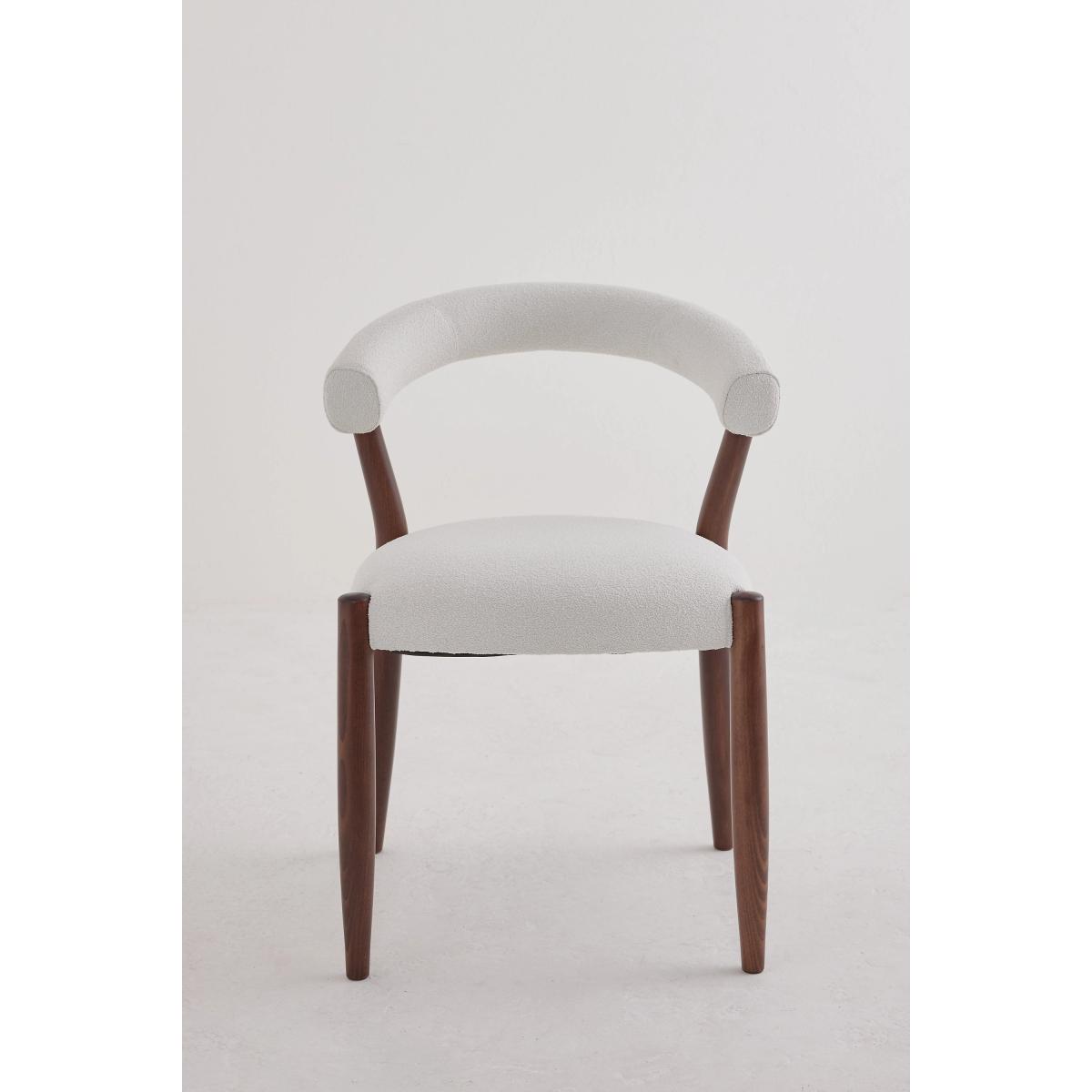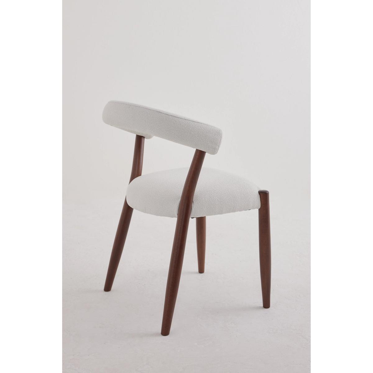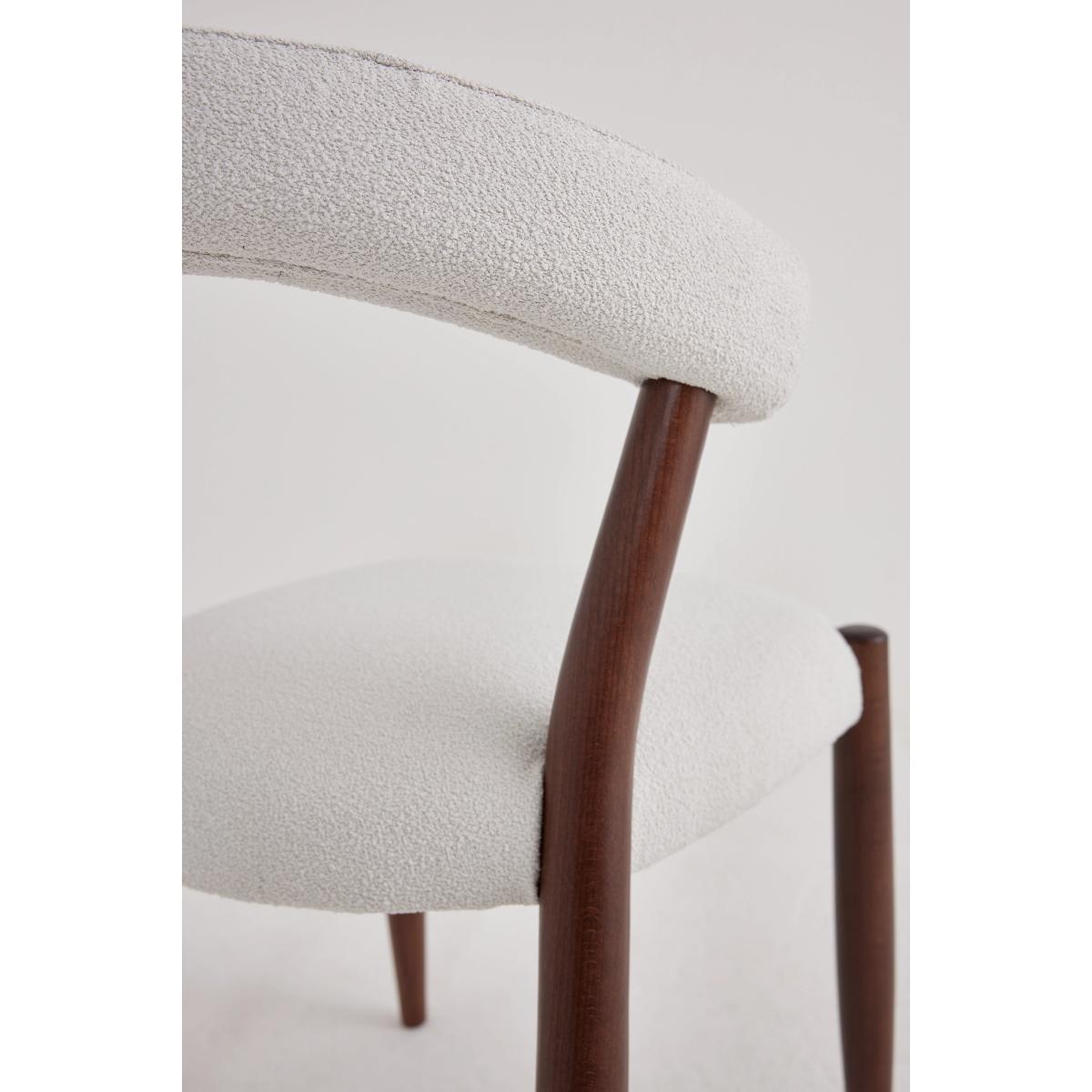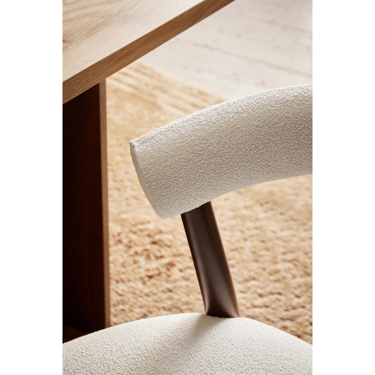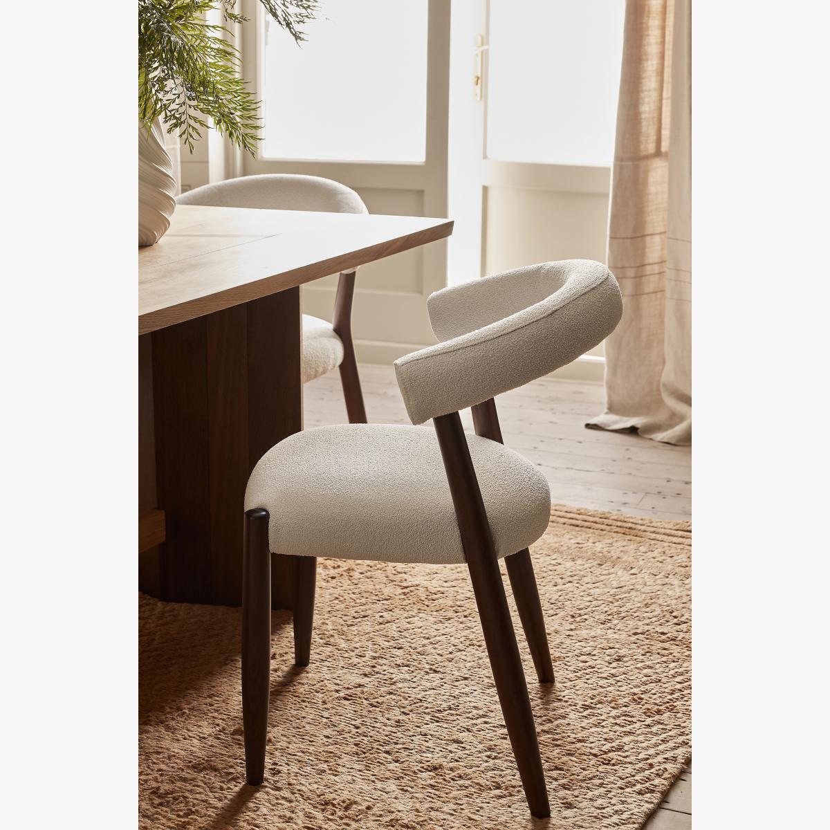 Crafted in Italy of sustainably sourced 100% FSC solid beech wood, and upholstered in Aquaclean boucle, this sleek, minimalist design adds a modern touch to your dining interior. * Sustainably sourced using FSC, solid beech wood; Walnut finish * Aquaclean Boucle upholstery (71% Polyester, 18% Modacrylic, 8% Recycled Cotton, 3% Polyamide); Foam fill * Intended for indoor use * Furniture pieces weighing over 30kg include delivery to your room of choice and packaging removal * All packaging is recycled and recyclable * Designed in Britain * Made in Italy