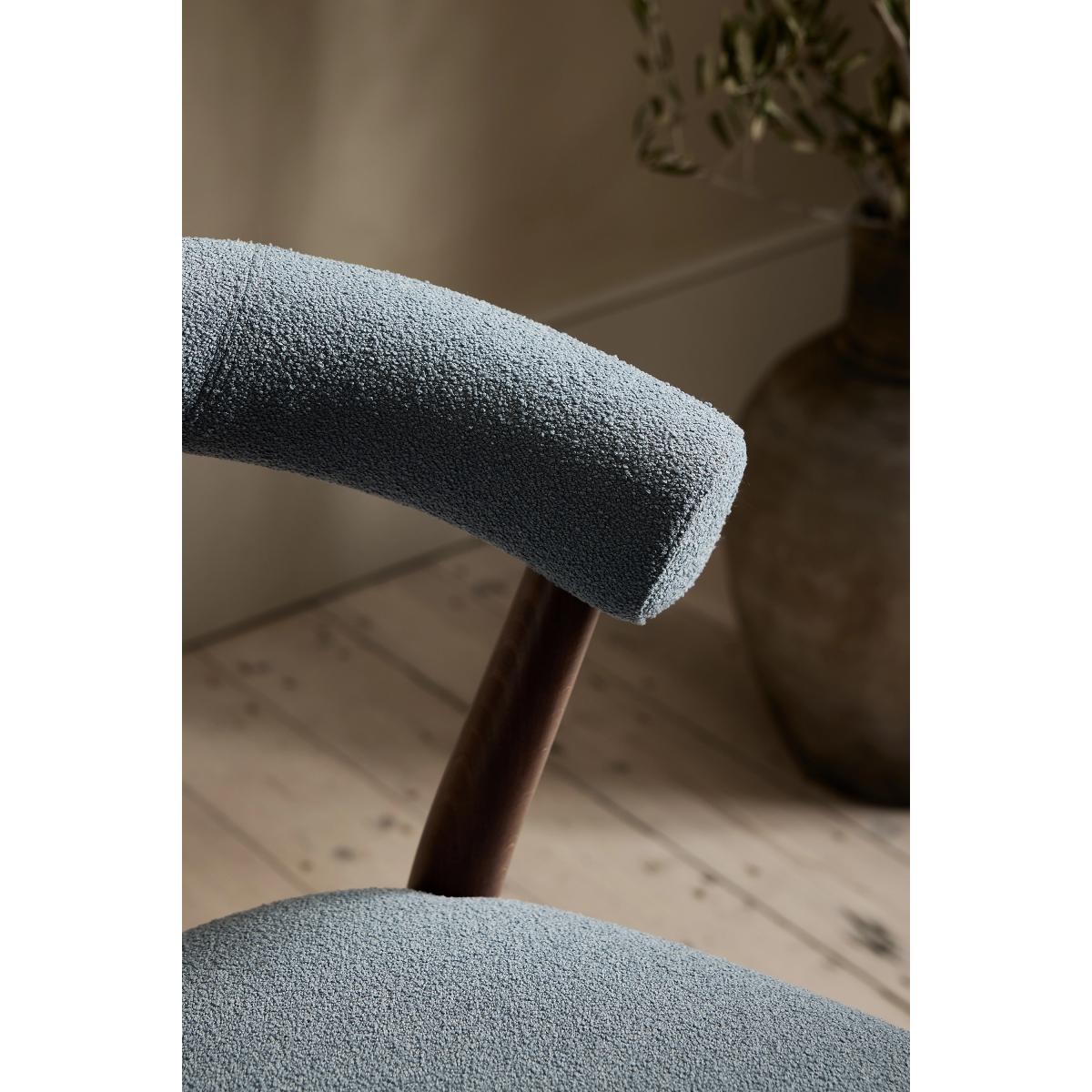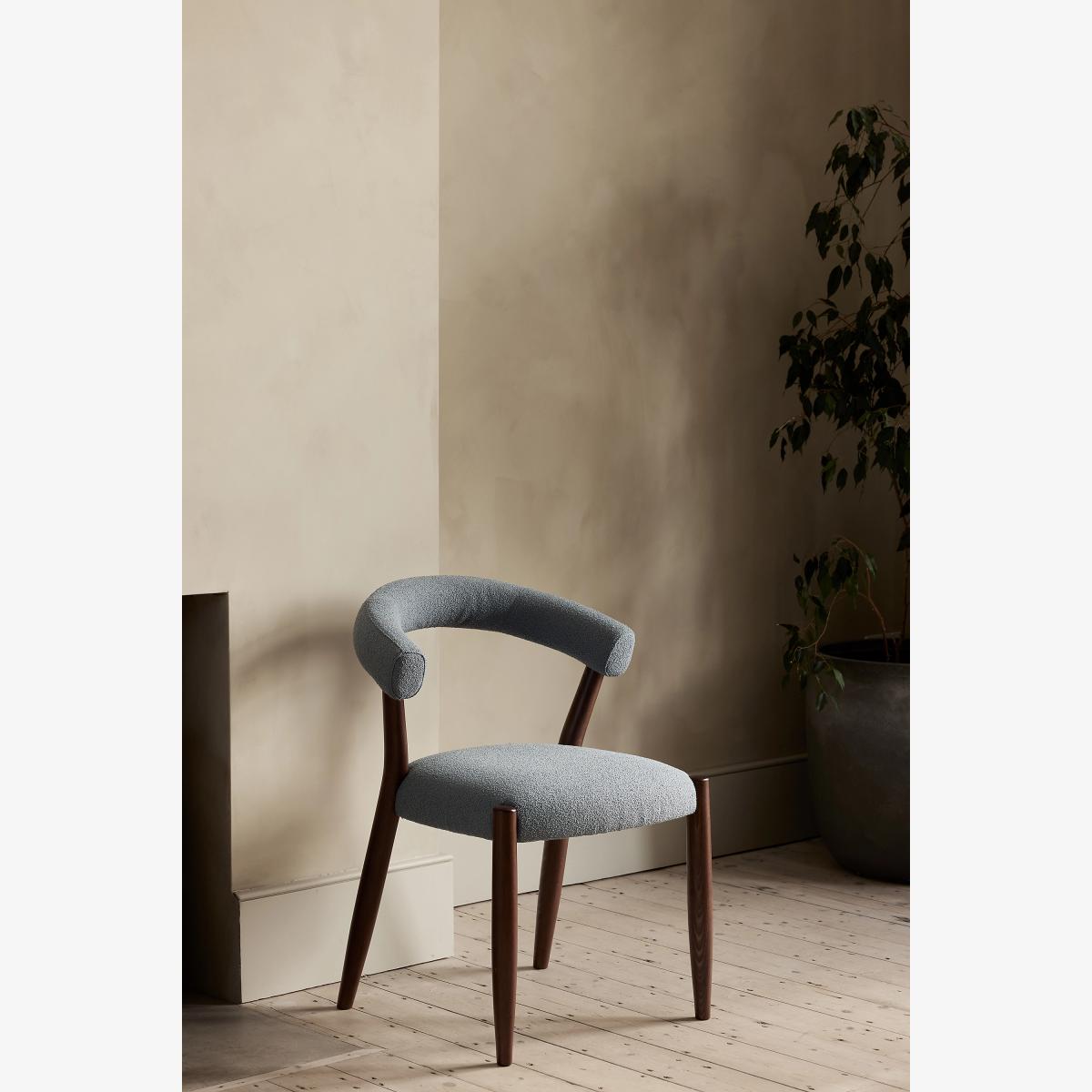 Crafted in Italy of sustainably sourced 100% FSC solid beech wood, and upholstered in Aquaclean boucle, this sleek, minimalist design adds a modern touch to your dining interior. * Sustainably sourced using FSC, solid beech wood; Walnut finish * Aquaclean Boucle upholstery (71% Polyester, 18% Modacrylic, 8% Recycled Cotton, 3% Polyamide); Foam fill * Intended for indoor use * Furniture pieces weighing over 30kg include delivery to your room of choice and packaging removal * All packaging is recycled and recyclable * Designed in Britain * Made in Italy