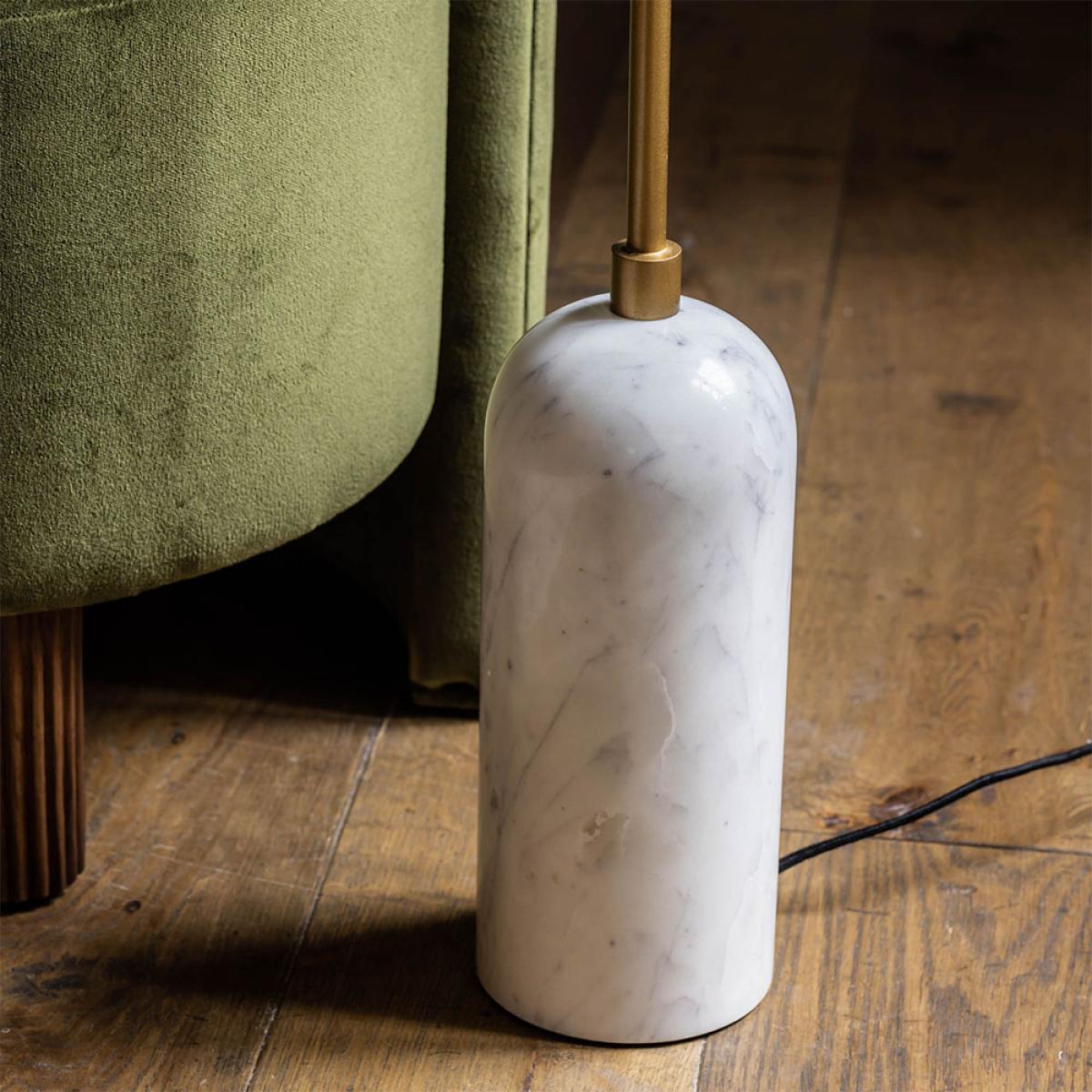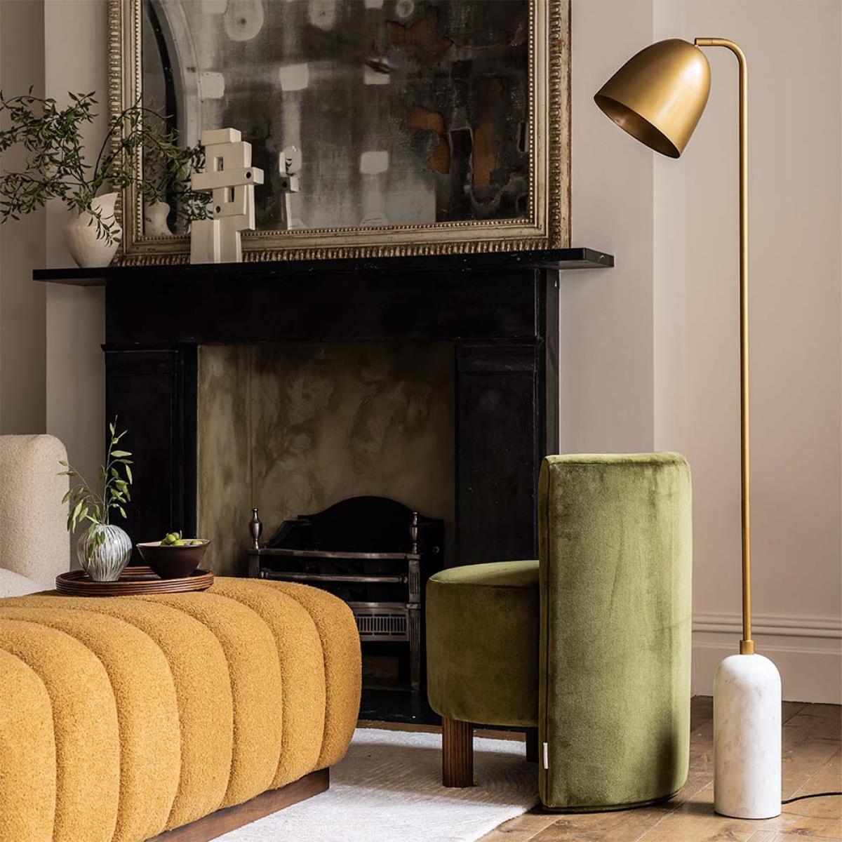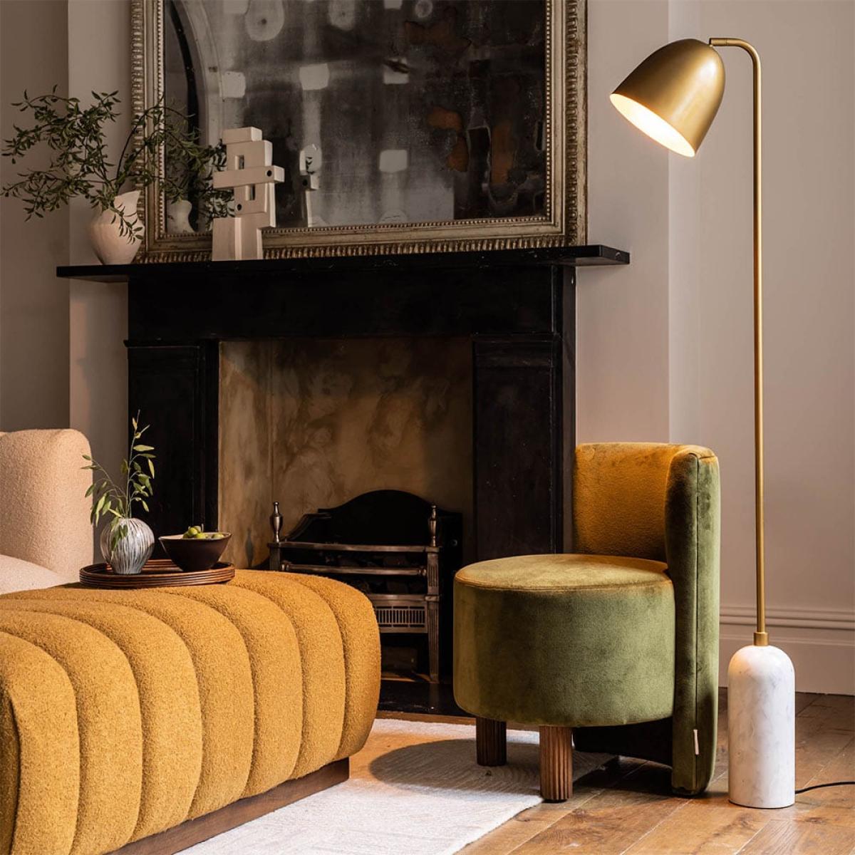 Inspired by Art Deco, this antique-bass and marble floor lamp is a shining example of classic design with a contemporary twist. Elsa’s neat proportions mean it doesn’t take up valuable floorspace while the arc shape enables you to position the light where you need it most – over an armchair or above a table, for example. Both practical and beautiful, the bell-shaped shade can be tilted up and down, while the antique-brass finish of the elegant stem adds a touch of glamour. The gorgeous marble base is solid and smooth, and its weight provides stability for the stem and shade.