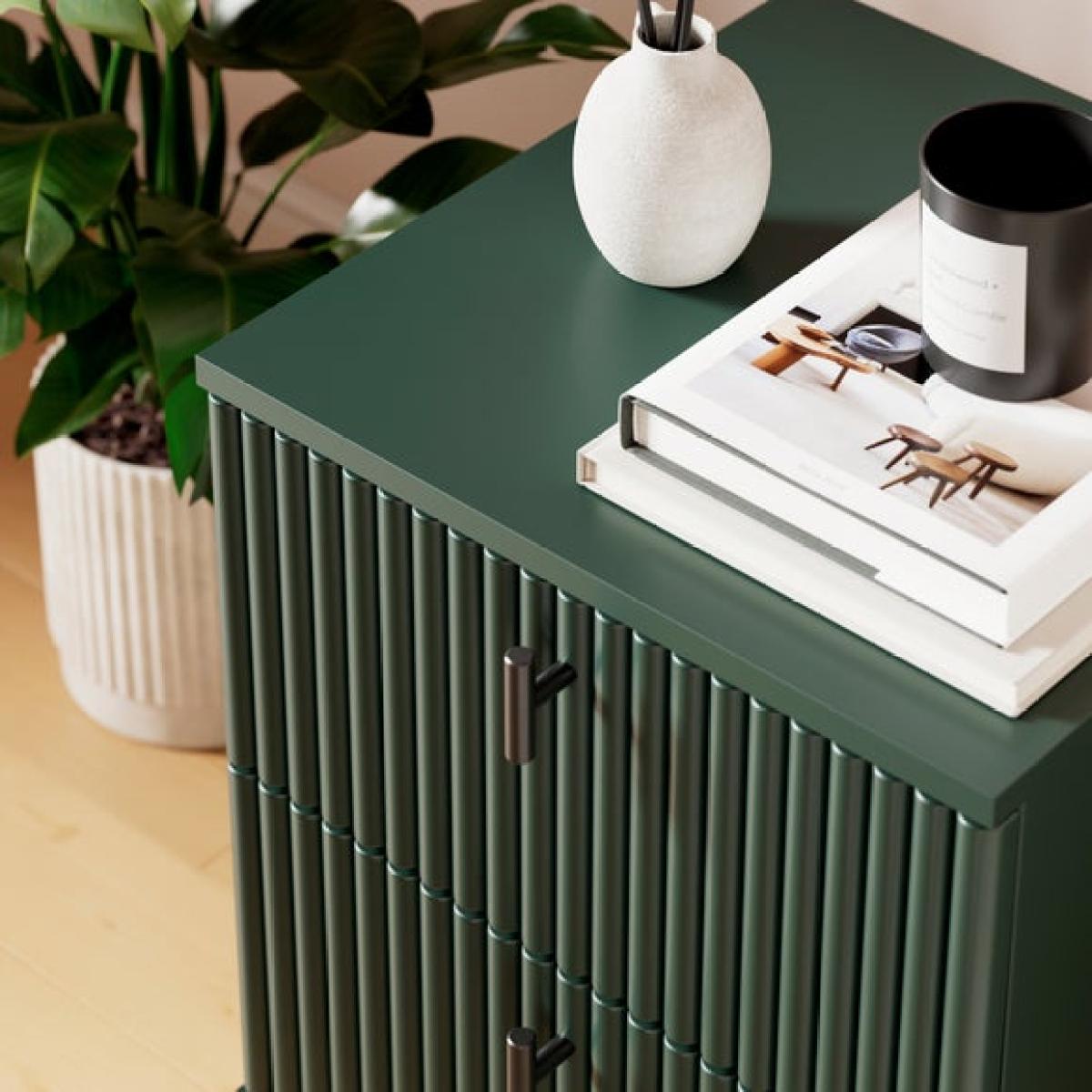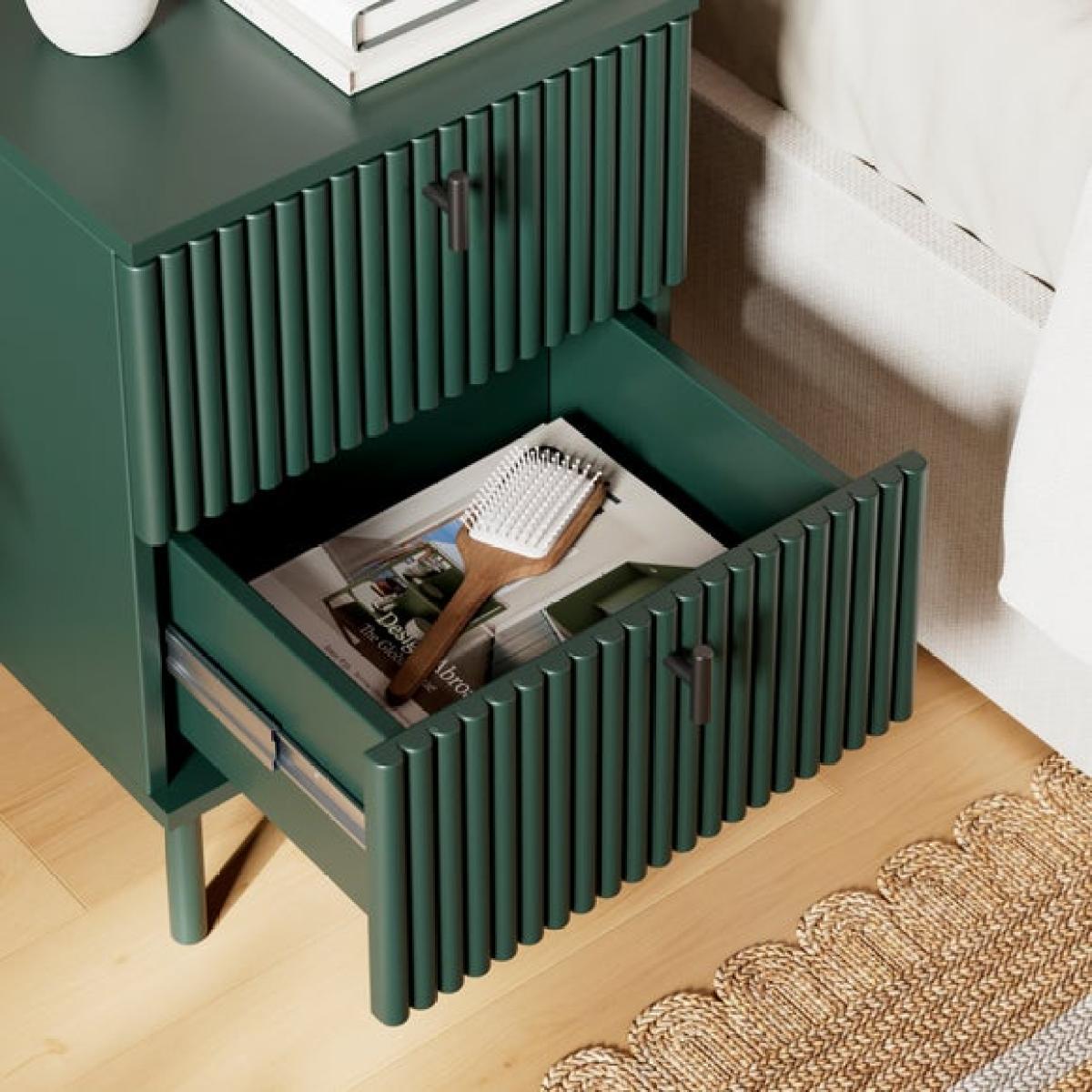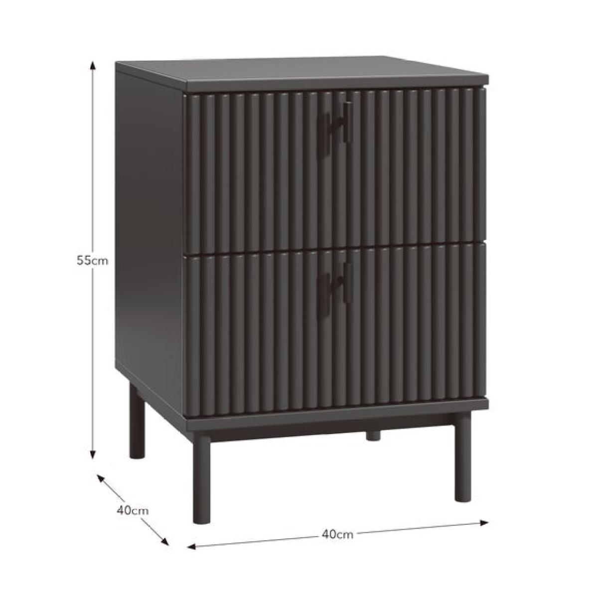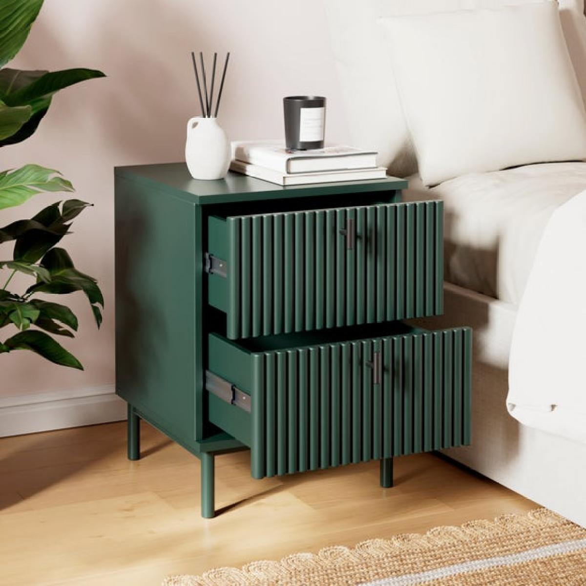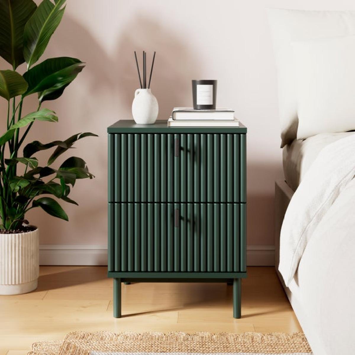 Dunelm Exclusive - Designed and Developed by Dunelm * Modern bedside table * Soft closing drawers * Painted finish This bedside table brings a gentle, nature-inspired charm to your bedroom with its soft painted finish and timeless silhouette. Designed to offer both beauty and practicality, it features two spacious drawers that glide smoothly, providing ample room for storing your nighttime essentials, whether it’s your favourite book, reading glasses, or a calming candle.