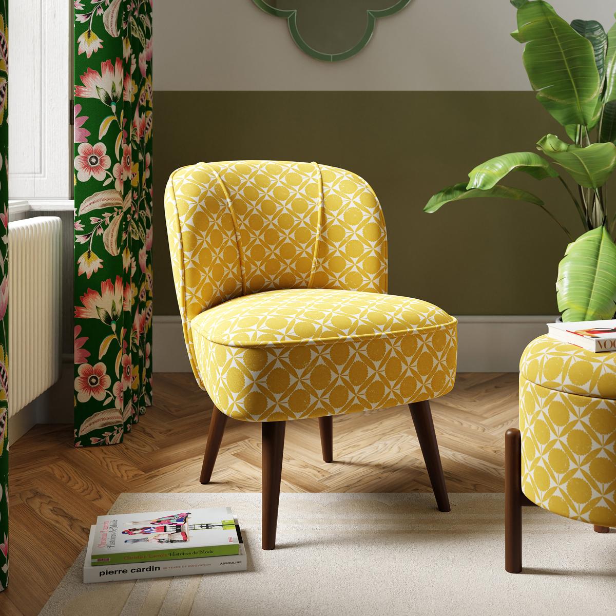 Elsie Cocktail Chair, Flatweave Daisy Print Yellow