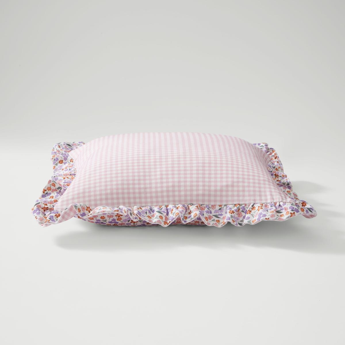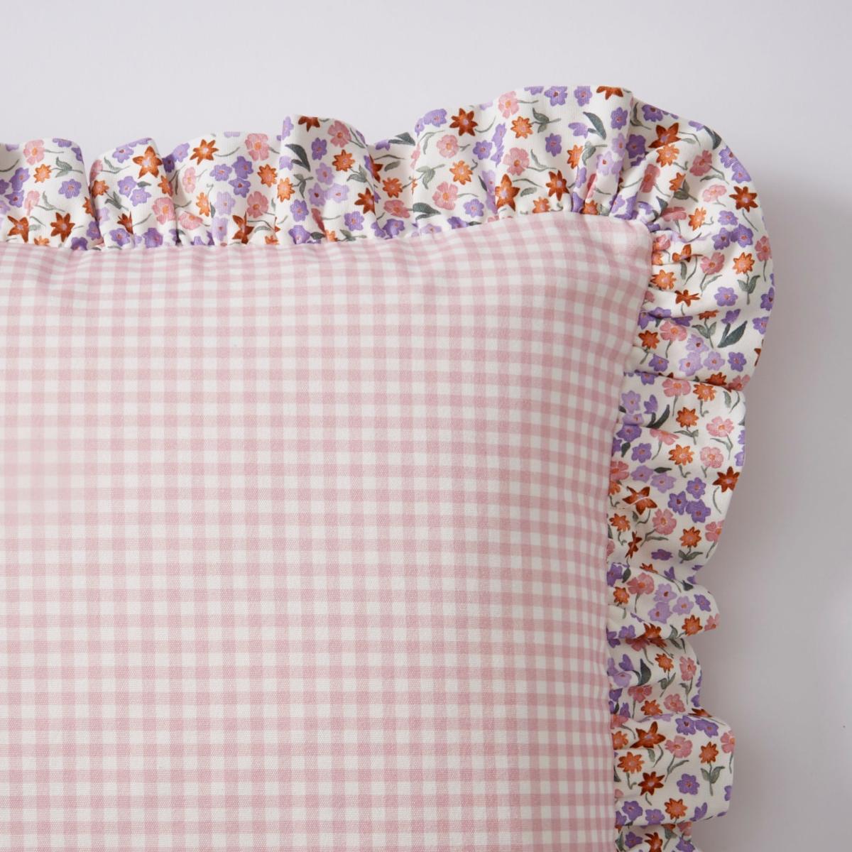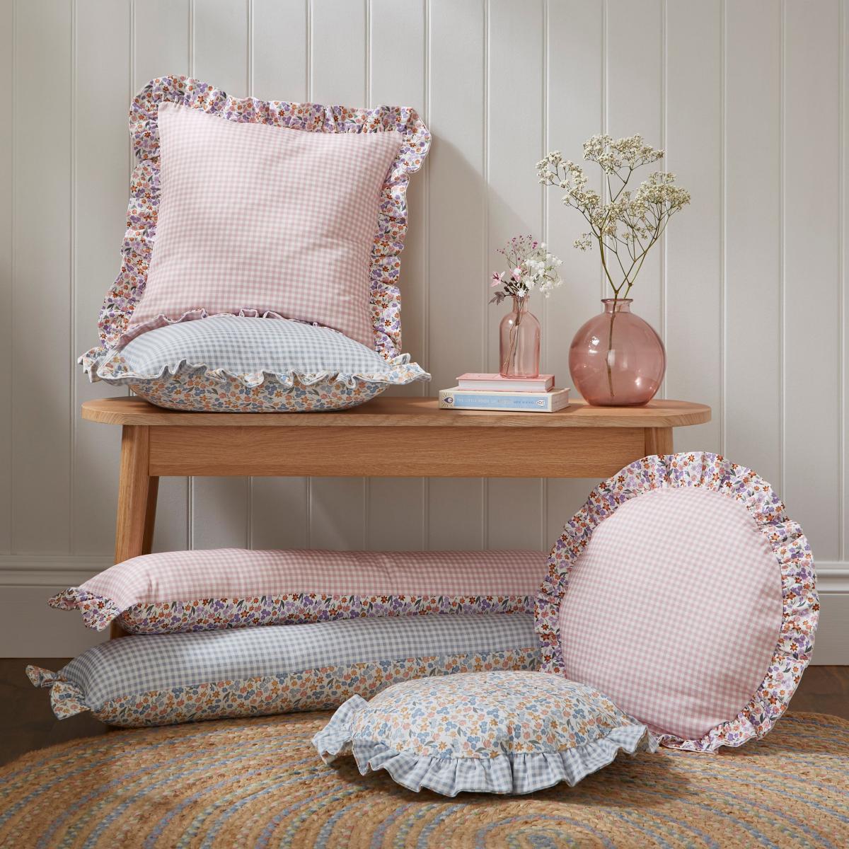 * 100% Cotton cover* Pretty floral and gingham design* Ruffle Edge detailing* Machine Washable* Coordinating items available Elevate the charm of your living space with our delightful Elsie cushion, crafted from 100% cotton for a soft and cosy feel. Featuring a charming gingham face and adorned with a floral print ruffle edge, this cushion adds a shabby-chic charm to any room. Its reversible design allows for versatile styling options, while the zip opening makes it easy to remove the polyester fibre filler inside. Available in two colours, this cushion is a perfect blend of style and comfort. Complete the look with our matching draught excluder for a cohesive decor theme.