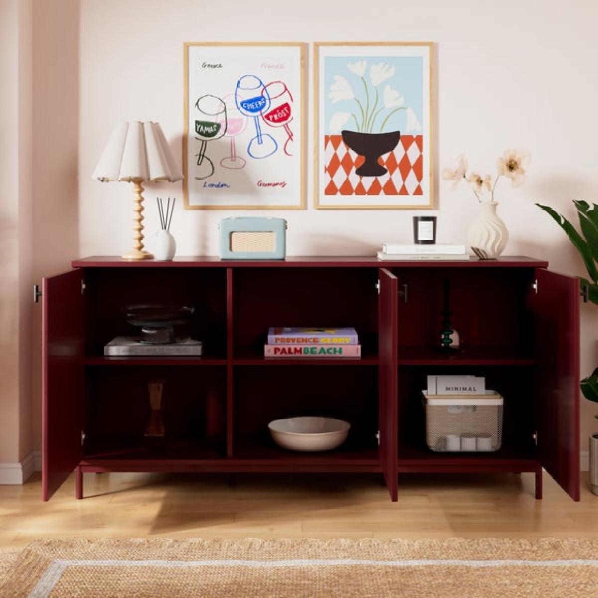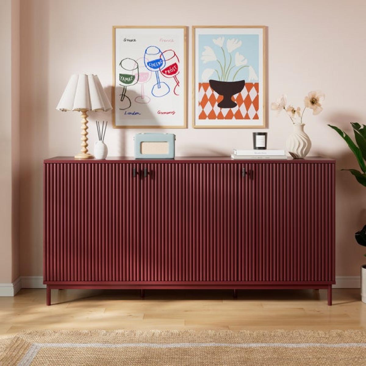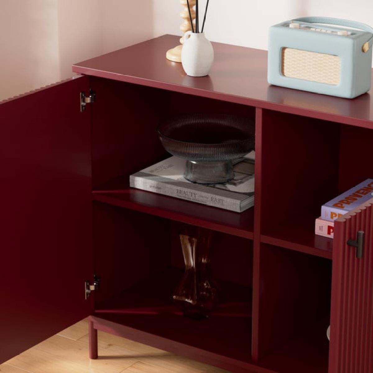 I love this big sideboard for its bold, ribbed design and rich colour, which makes it a real statement piece. It works well in both modern and eclectic interiors, adding texture and visual interest without overwhelming the space. Practical styling tips include using it as a media console in a living room, stacking baskets or decorative boxes on top for extra storage, or displaying artwork and vases to create a personalised look. Its generous size makes it perfect for hiding away household clutter while still serving as a striking focal point in the room.