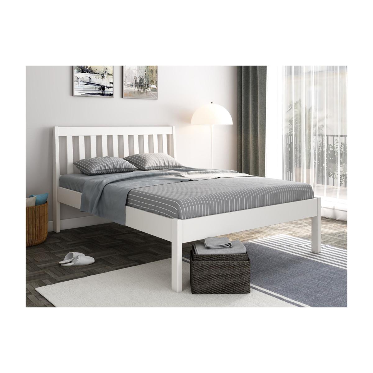 This shaker-styled bed offers a solid, unique and simplistic addition to any bedroom setting through the use of a classic white colourway. Perfect for a modern or classic theme, this comfortable sleeping space combines both storage and aesthetics into one with the classic wooden frame being able to account for various boxes underneath the frame, which can easily make any small room feel much more spacious. Included are a shaker headboard, low footboard and chunky legs to help with the build quality, ensuring durable construction, and bringing a long-lasting statement piece to any home. Although the design is quite striking we have not forgotten about providing a quality night's sleep, as the frame is equipped with a wooden slatted base to allow for extra comfort The Elsie is available in a double or kingsize. All Noomi beds are made from solid wood is sourced from sustainably managed forests. The Pine is coated with a luxurious White, non-toxic, eco-friendly water-based paint. Each individual piece of pine is moisture tested to ensure a robust and long-lasting build.