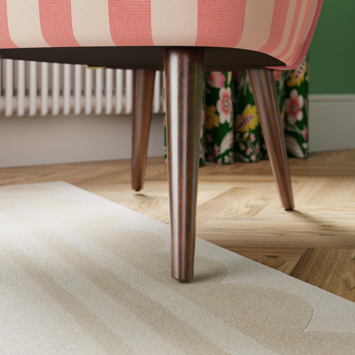 I love the Elsie for its playful pink stripes and mid-century silhouette - it injects a hit of colour into a neutral corner. The soft upholstery and slim, angled legs sit equally well in Scandi, coastal or eclectic schemes. To style it, float it on a neutral jute rug with a sculptural lamp on a slim brass side table, or add a contrasting green velvet cushion. Its compact footprint makes it perfect as a hallway perch or extra seat in a snug living room.