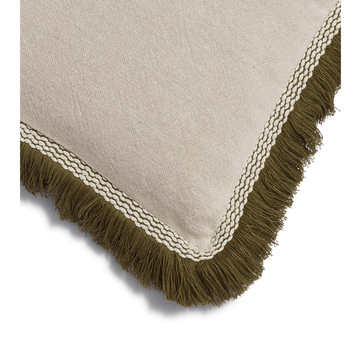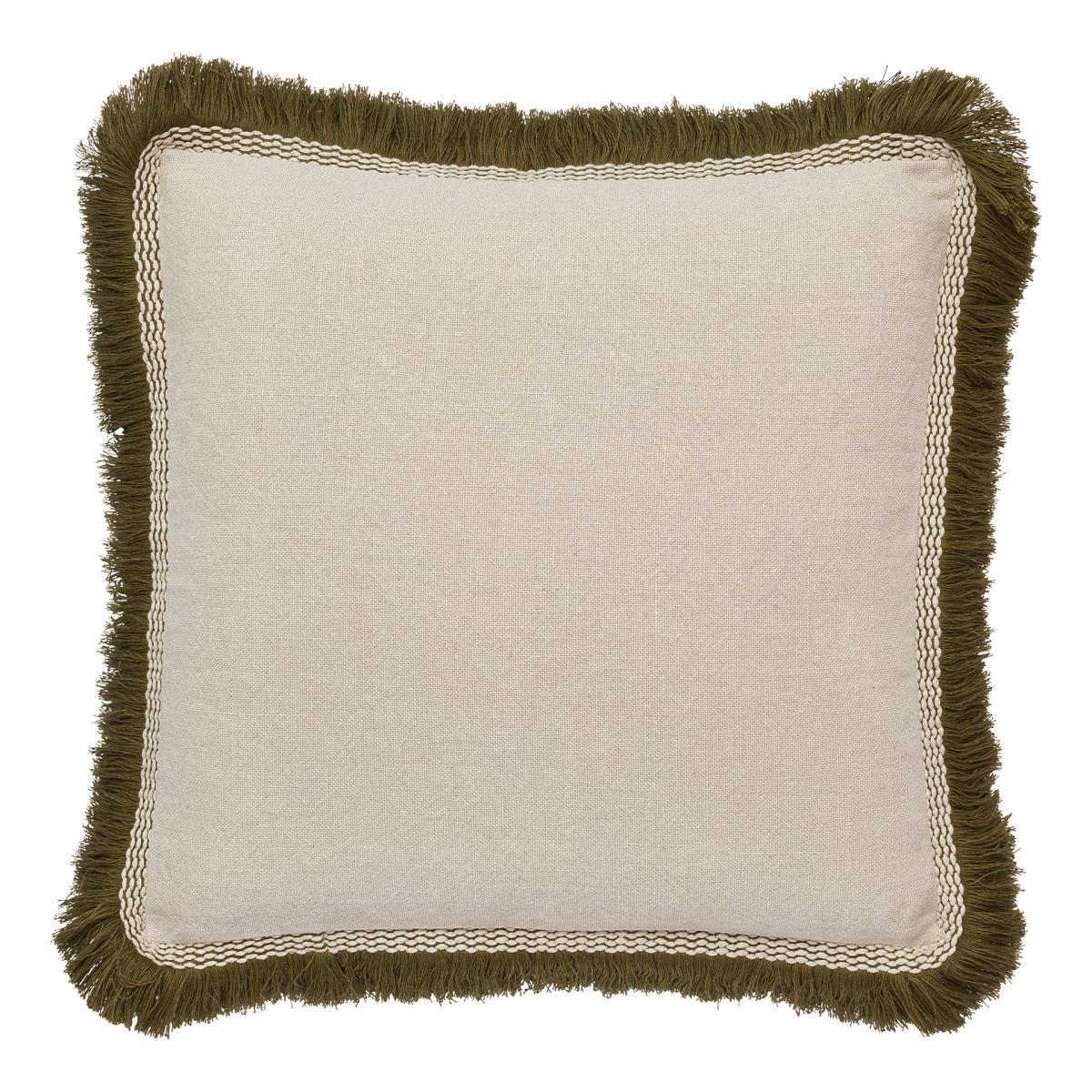 Elspeth Cushion Cover with Fringing - Natural/Green Natural