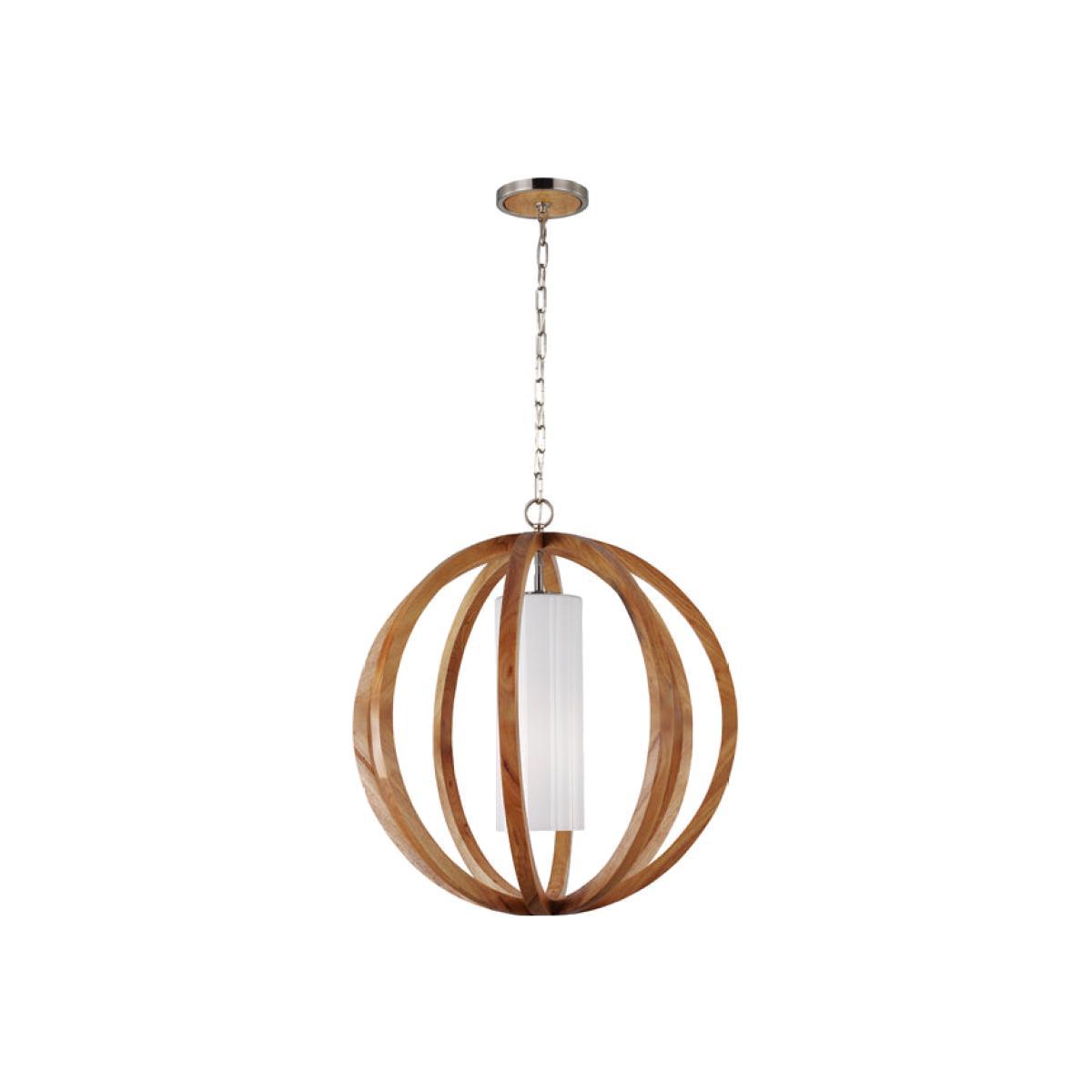 Make a statement with this stunning orb pendant. Made predominantly of a warm oak wood it will complement natural wood room furnishings beautifully. The curved oak beams have been specially kiln dried to prevent cracking. Inside the oak hoops the opal glass diffuser is mounted on a brushed steel fitting and hung from a matching chain. This wooden orb is admirably light and airy and adds relaxing warmth and texture to home interiors. The Allier collection by Elstead is named after the French forest region which famously supplies wood for wine barrels. The range also includes other sizes and flush mount versions of the Allier. *Moot Trading Ltd is not a lender and acts only as an introducer. The credit product is provided by Klarna Bank AB (publ). Credit is only available to permanent UK residents aged 18 and over, subject to status. Terms and conditions apply. Please note that the following products are not regulated by the FCA: Pay in 30 days and Pay in 3 instalments. Read More.