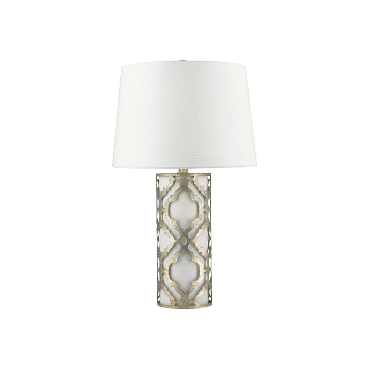 Fill your home with style and glamour with this stunning Elstead Arabella Distressed Silver Table Lamp. The Arabella lamp will add a sophisticated touch of luxury to your home with its beautiful distressed silver metal base, intricately designed with ornate cut-out shapes. The lamp has a white cream linen fabric shade and a glass diffuser to soften the light. This is an ornate lamp that will look perfect in your home, even when it is not switched on. The lamp takes one bulb and is perfect for LED lamps. The neutral colour palette and simple design make this a versatile lamp. *Moot Trading Ltd is not a lender and acts only as an introducer. The credit product is provided by Klarna Bank AB (publ). Credit is only available to permanent UK residents aged 18 and over, subject to status. Terms and conditions apply. Please note that the following products are not regulated by the FCA: Pay in 30 days and Pay in 3 instalments. Read More.