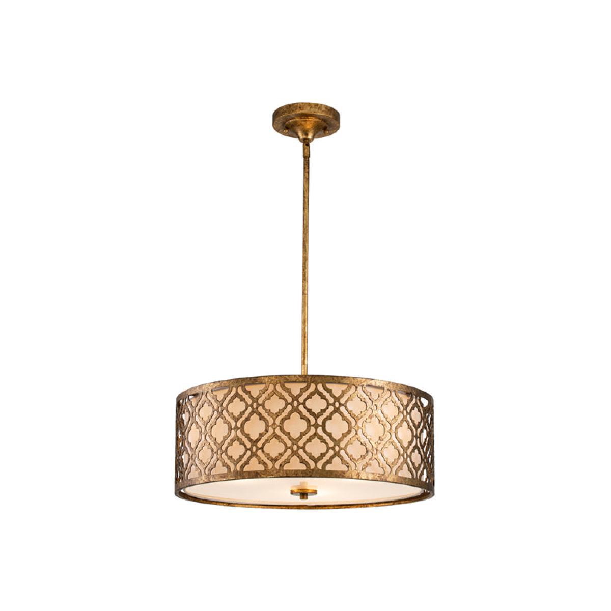 The Elstead Arabella Distressed Gold Pendant Light is a classical light that oozes elegance and sophistication, making it certain to bring some class into the lighting fixtures in your home. The Distressed Gold metal exterior combines beautifully with the cream linen of the light shade and the soft glass diffuser, creating a light that exudes a comforting and warm glow. The rod stem of the pendant light is adjustable to accommodate your needs, so you are sure to find a suitable place for the piece. The Pendant Light measures at 20. 3cm in height and 53. 3cm in diameter and requires three 75W E27 bulbs. *Moot Trading Ltd is not a lender and acts only as an introducer. The credit product is provided by Klarna Bank AB (publ). Credit is only available to permanent UK residents aged 18 and over, subject to status. Terms and conditions apply. Please note that the following products are not regulated by the FCA: Pay in 30 days and Pay in 3 instalments. Read More.