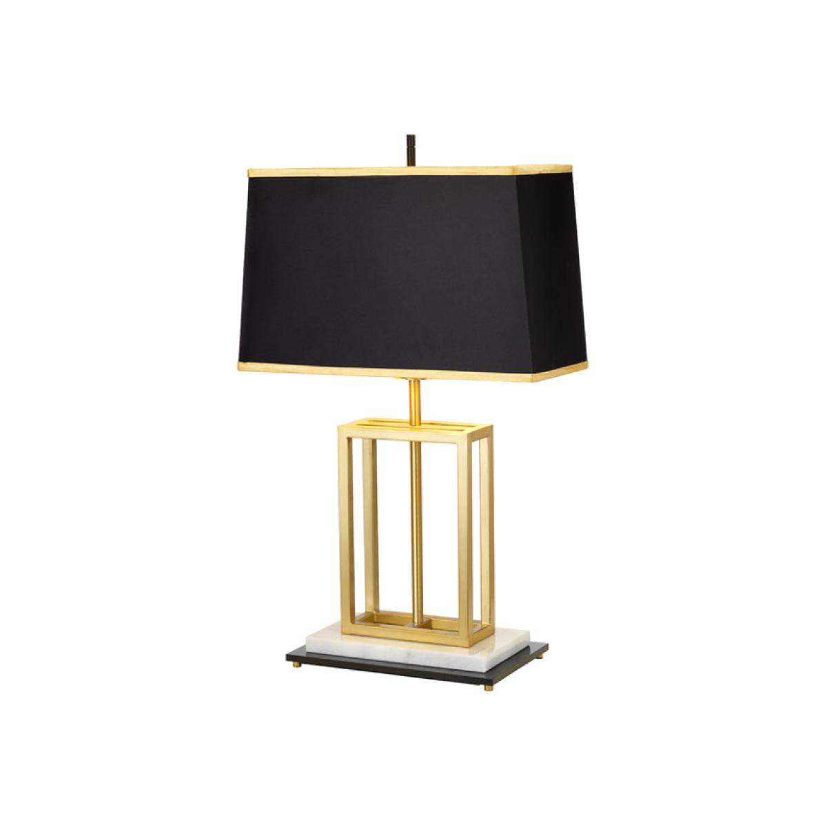 This unique table lamp is rectangular in design, which is unusual for such a piece. It will provide a stunning focal point to any living space or hallway. The base of the lamp is fashioned from bla. View More. This unique table lamp is rectangular in design, which is unusual for such a piece. It will provide a stunning focal point to any living space or hallway. The base of the lamp is fashioned from black and white marble, which gives it a stunning contrast that adds to the aesthetic. The rectangular lamp stand is made from brushed brass and the lampshade from faux silk lining and trim, which is also edged in brushed brass to finish the overall theme. The finished effect is one of taste and sophistication. The lamp features one candle holder that will provide a cosy ambience in your space.