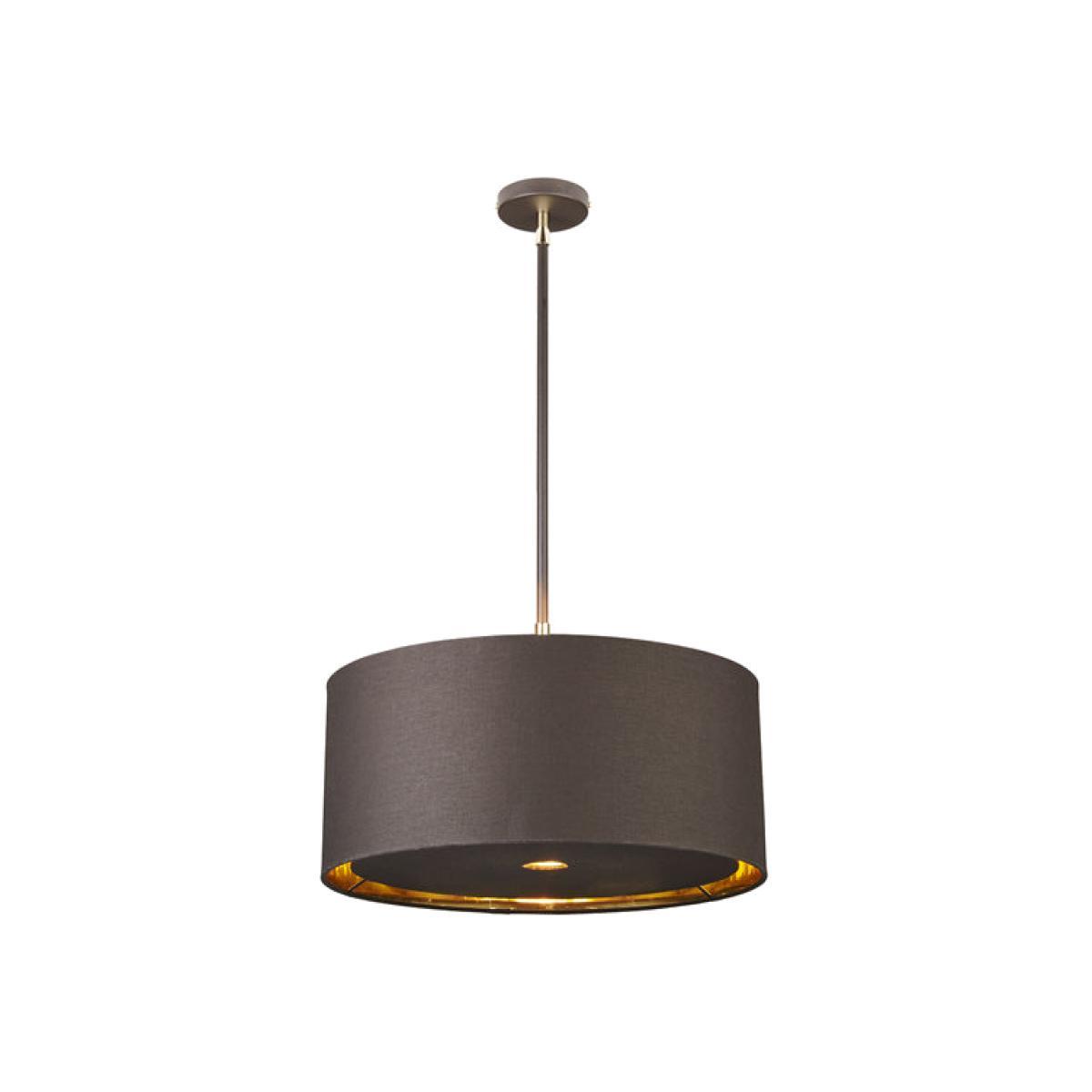The Balance Brown and Polished Brass Pendant from Elstead features a contemporary mocha brown colour with polished brass elements to give this pendant a retro style for both modern and more traditional settings. This pendant takes one light, which sits in a round mocha brown fabric shade suspended from the ceiling on a slim brass pole. The shade has a gold metallic lining that lets a gentle glow shine through. The Balance range includes table and floor lights as well as pendants, wall lights and chandeliers, so you can choose other co-ordinating lamps from the range to create a beautiful lighting scheme for your home. *Moot Trading Ltd is not a lender and acts only as an introducer. The credit product is provided by Klarna Bank AB (publ). Credit is only available to permanent UK residents aged 18 and over, subject to status. Terms and conditions apply. Please note that the following products are not regulated by the FCA: Pay in 30 days and Pay in 3 instalments. Read More.