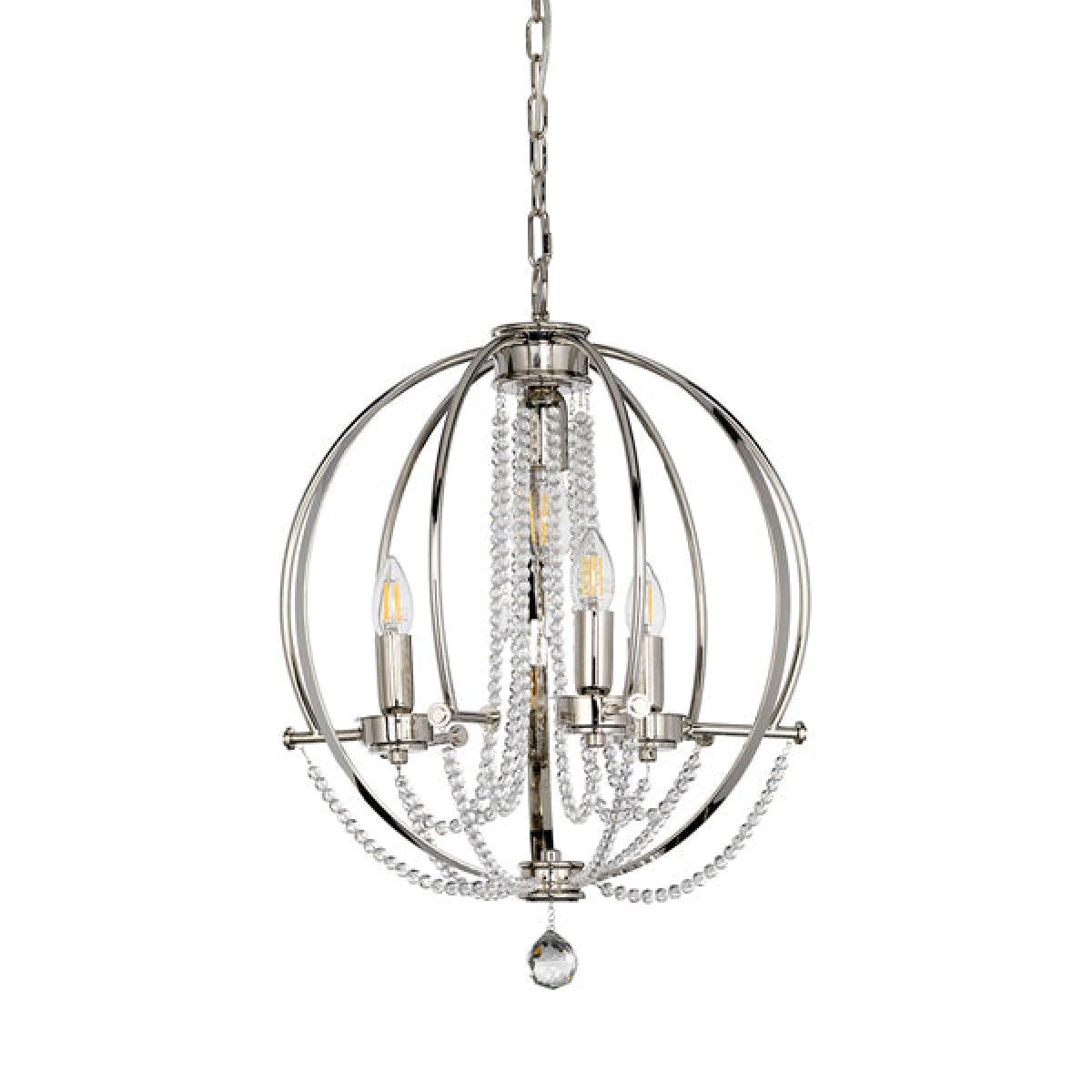 The Elstead Cassie 4 Light Polished Nickel Plated Chandelier is a visually stunning combination of delicate curves and shimmering lights to create a dynamic and bright spectacle for the enjoyment of the home place. The modern spherical form has been taken and redesigned with clasping metal bands linked with crystal swags to help emphasise the illumination and cast a more glorious and wide-ranging light that will fill the surrounding environment. Measuring at H: 58. 1 x W: 45. 8 x D: 45. 8 cm, the glitz and glamour of this chandelier is certainly deserving of the admiration and attention that it will receive. *Moot Trading Ltd is not a lender and acts only as an introducer. The credit product is provided by Klarna Bank AB (publ). Credit is only available to permanent UK residents aged 18 and over, subject to status. Terms and conditions apply. Please note that the following products are not regulated by the FCA: Pay in 30 days and Pay in 3 instalments. Read More.