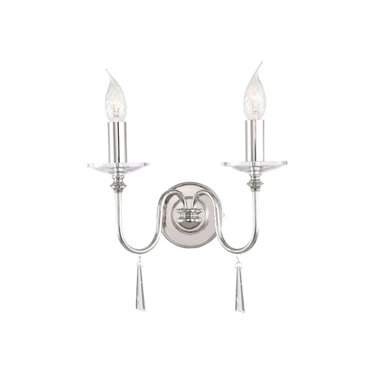 Delicate hand-cut glass droplets add a touch of finesse to this light fitting by Elstead. This traditional candle-style light will bring added glamour to any wall in your home but with a more modern look thanks to its polished nickel finish. Two candle-style lights stand on glass-cut sconces, held up by ornamental metal arms that are attached to a round wall mount. The glass droplets hang from these metal arms to add extra interest and understated elegance. The Finsbury Park 2 Light Polished Nickel Wall Light is 23 cm tall and 30 cm wide and requires two 60W E14 bulbs. *Moot Trading Ltd is not a lender and acts only as an introducer. The credit product is provided by Klarna Bank AB (publ). Credit is only available to permanent UK residents aged 18 and over, subject to status. Terms and conditions apply. Please note that the following products are not regulated by the FCA: Pay in 30 days and Pay in 3 instalments. Read More.