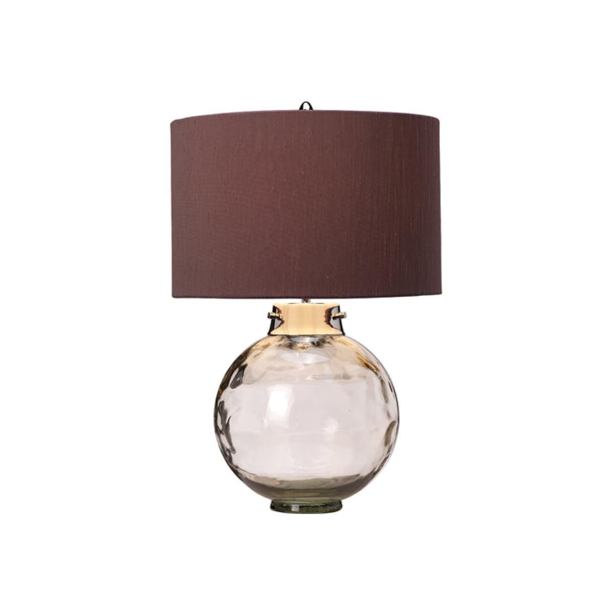 This wonderful piece was hand-crafted in the UK and uses blown glass to provide the lamp stand. This is created in a goldfish bowl design and features mottled glass. This is a unique piece, and it will provide a wonderful focal point in any living space. The lamp shade is made of brown silk and features a single bulb. The simplicity of the circular lampshade does not distract from the stand, and the solid gold bar between the two adds an air of sophistication to the overall effect. This piece is sold separately, but can be twinned to provide the perfect symmetry in your home. *Moot Trading Ltd is not a lender and acts only as an introducer. The credit product is provided by Klarna Bank AB (publ). Credit is only available to permanent UK residents aged 18 and over, subject to status. Terms and conditions apply. Please note that the following products are not regulated by the FCA: Pay in 30 days and Pay in 3 instalments. Read More.