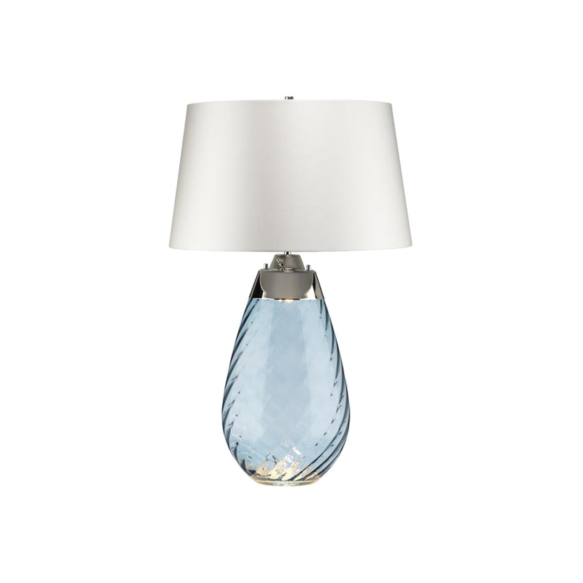 Add a fresh, elegant touch to any home with the Elstead Lena 2 Light Blue-tinted Glass and Off-White Shade Table Lamp. This beautiful lamp evokes a timeless sense of luxury thanks to its satin smooth shade in crisp white lined with chic matt silver. The base is masterfully crafted with hand-blown glass in a cool blue tone that will look delightful in any smart living area, hallway, study or bedroom. This alluring lamp also cleverly makes use of the "Dual Lit" system, which allows the creation of a customised lighting effect thanks to a four-way switch that illuminates the shade and base. Dimensions:Fitting H: 74 x Dia: 46 Fitting H: 60.5 x Dia: 35 cm Requires 1 x 60W E27 Bulbs - not included