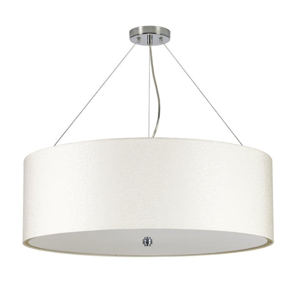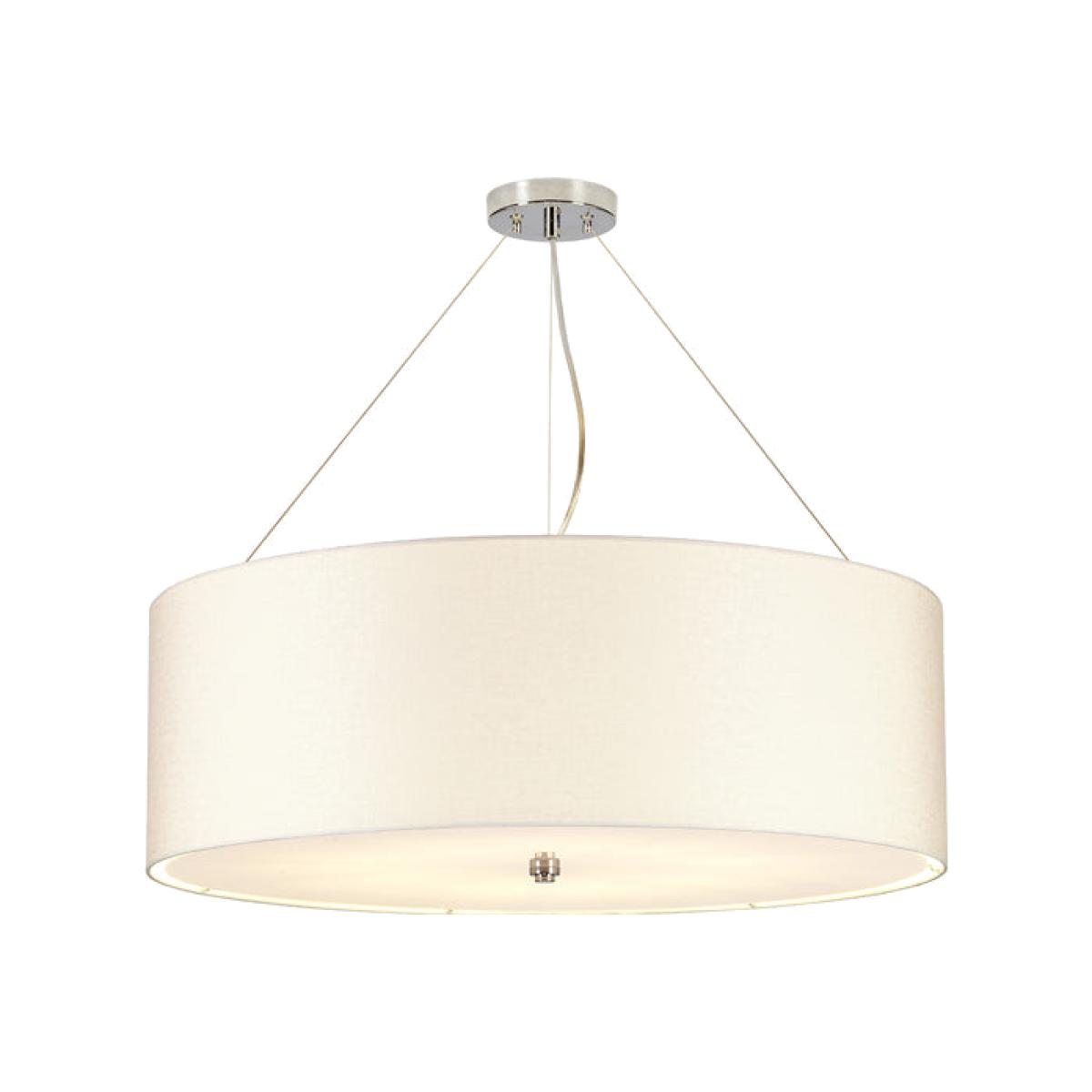 Suspended form a simple yet pleasing ceiling mount, the Elstead Pearce 30 inch polished chrome pendant ceiling light is a desirable and stylish addition to the home place. Guaranteed to brighten up. View More. Suspended form a simple yet pleasing ceiling mount, the Elstead Pearce 30 inch polished chrome pendant ceiling light is a desirable and stylish addition to the home place. Guaranteed to brighten up the surrounding environment and produce a warming and comforting glow, this pendant light is a pleasure to admire. Measuring at H: 26. 2 x Dia: 76. 2 cm, the stylish faux silk Ivory shade will complete this elegant and classical ceiling light. This light will produce a glorious illumination for whichever room you choose to place it, ensuring a pleasing result. Included with this product is a gloss white acrylic bottom diffuser.