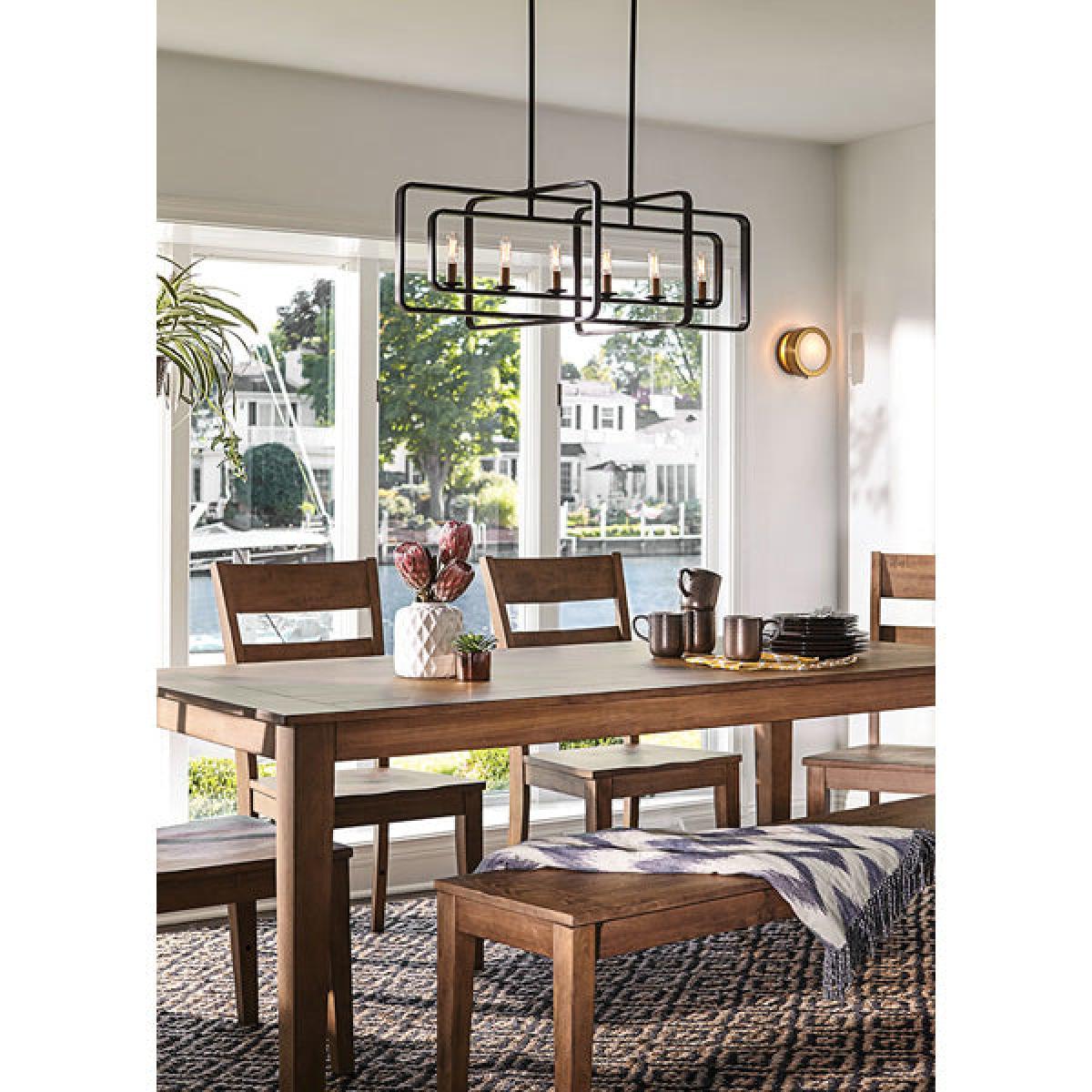 These days, light fittings aren't just functional, they are important elements of interior design that provide charm, interest and detail to your home. This stunning Quentin 6-light chandelier from Elstead Lighting does just that. Its angular, geometric design is composed of intersecting steel rectangles finished in a dark Buckeye Bronze and suspended on two adjustable steel rods. Despite these robust materials the overall effect is extraordinarily light and airy providing ample light from the nested row of six brass bulb holders. The elongated design would look great over a long dining table, bar or billiard table. The Quentin's lines and intricate silhouette are awe inspiring. *Moot Trading Ltd is not a lender and acts only as an introducer. The credit product is provided by Klarna Bank AB (publ). Credit is only available to permanent UK residents aged 18 and over, subject to status. Terms and conditions apply. Please note that the following products are not regulated by the FCA: Pay in 30 days and Pay in 3 instalments. Read More.