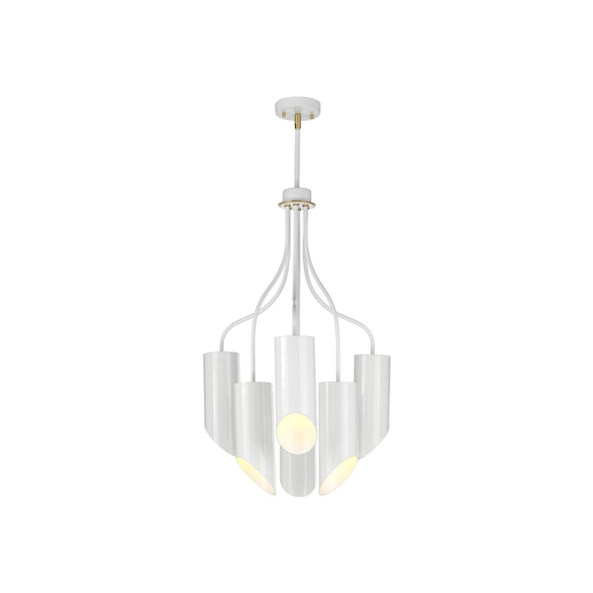 Most modern electric chandeliers borrow design features from the classic lighting fixtures that preceded them, but this 6-light Quinto chandelier from Elstead Lighting owes just as much inspiration to the church organ - except that it plays with light not sound. Instead of candlestick bulbs, ornate arms and spooky shadows, the Quinto offers us a gleaming white array with clean lines, brass accents and adjustable lamps that allow for light to be focused precisely where needed. The Quinto range is designed for functionality but proves just how funky contemporary design parameters can be. The 6-light Quinto chandelier is 52cm in diameter and 73. 8cm high. *Moot Trading Ltd is not a lender and acts only as an introducer. The credit product is provided by Klarna Bank AB (publ). Credit is only available to permanent UK residents aged 18 and over, subject to status. Terms and conditions apply. Please note that the following products are not regulated by the FCA: Pay in 30 days and Pay in 3 instalments. Read More.