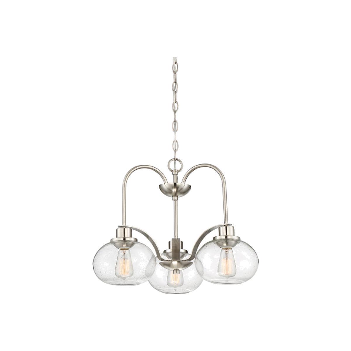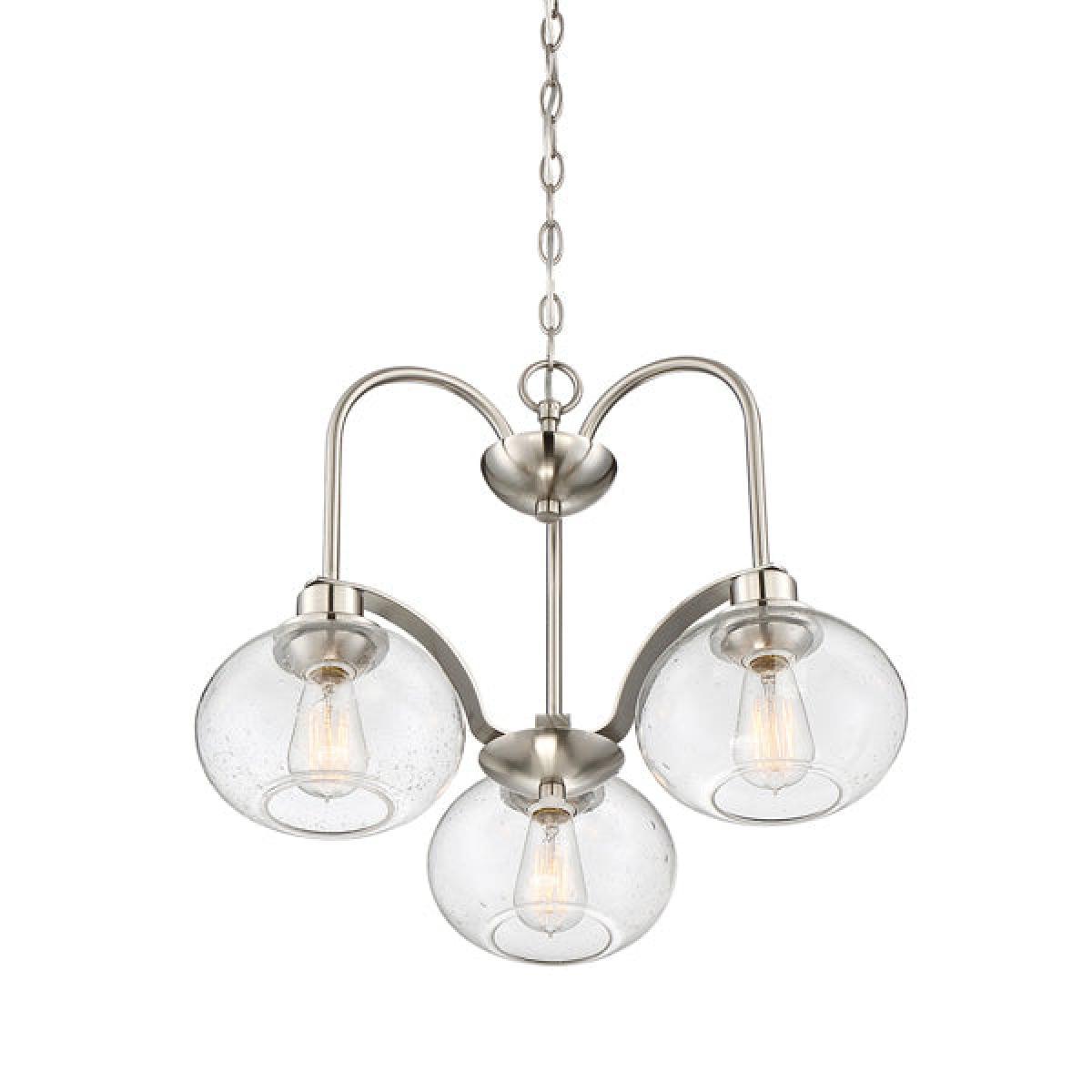 Combine the old with the new in this stunning Elstead Trilogy 3 chandelier. Drawing on light fitting styles from years gone by, this impressive chandelier brings us a contemporary twist with its three seeded glass shades that perfectly encase retro inspired bulbs. It is available in both silver and brushed nickel effect, and this is a light fitting that will bring elegance and ambience into any kitchen, hallway or living area, whether than be modern or traditional. Designed to emit a soft warm glow, Trilogy 3 is a luxurious chandelier that is nostalgic, chic and functional. The perfect addition to your home. *Moot Trading Ltd is not a lender and acts only as an introducer. The credit product is provided by Klarna Bank AB (publ). Credit is only available to permanent UK residents aged 18 and over, subject to status. Terms and conditions apply. Please note that the following products are not regulated by the FCA: Pay in 30 days and Pay in 3 instalments. Read More.