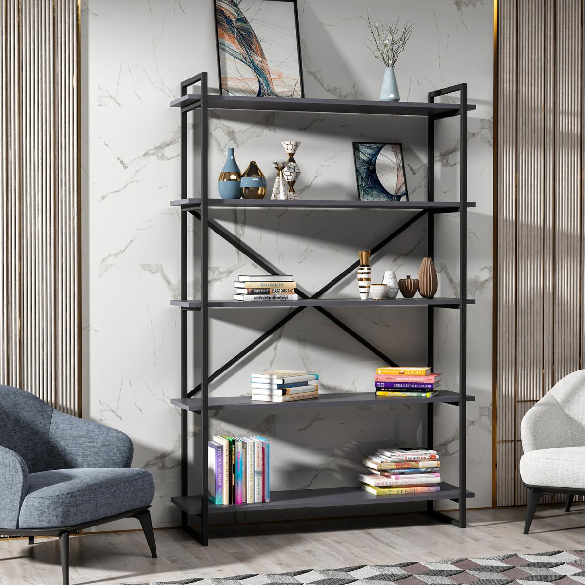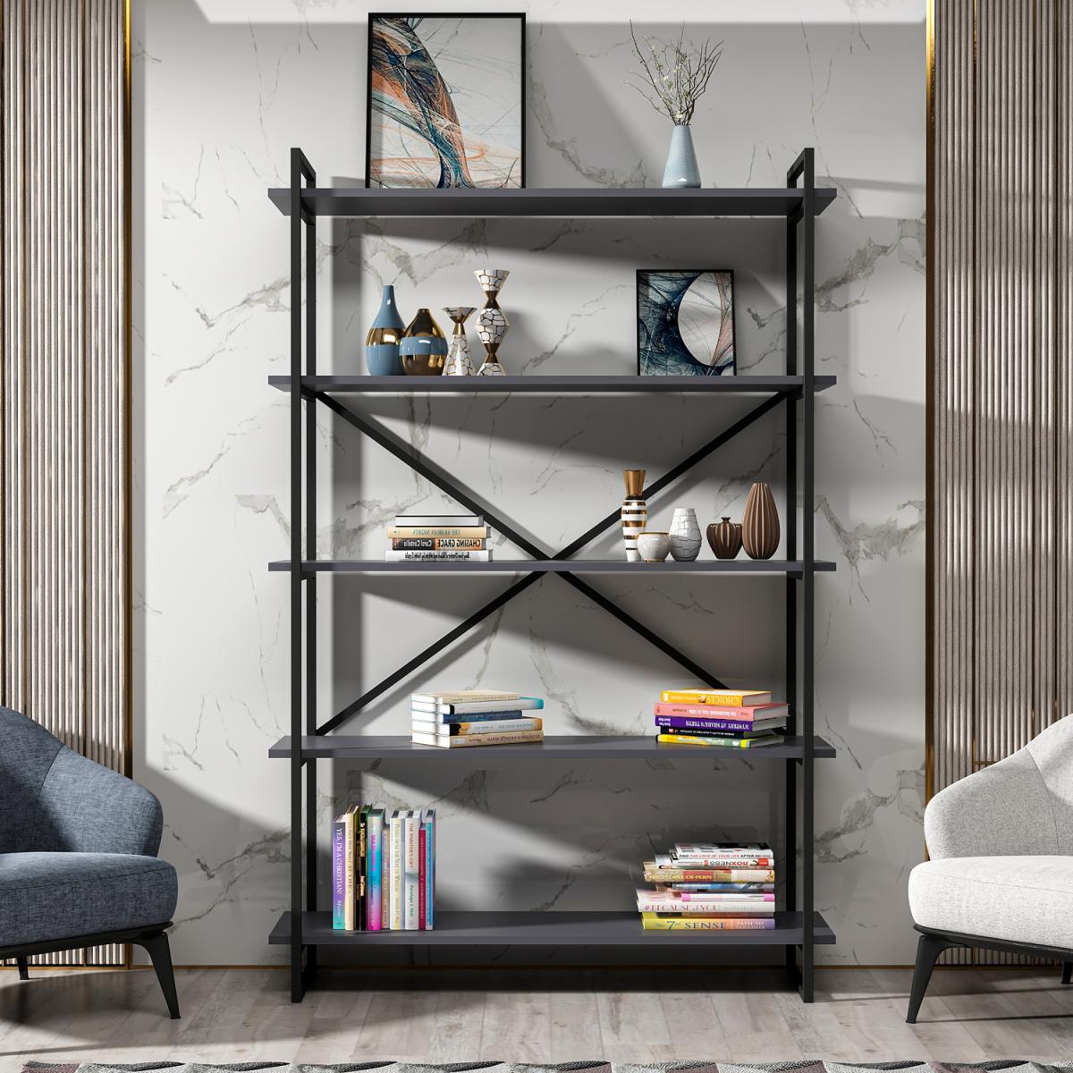 Meet the great mixture of modernity and elegance for Elston bookcase. The simple but practical 180 cm tall bookcase will enable you to store your books and organize your decorative items. With its charming design, it will be the highlight of your room. The bookcase shelves are made of 18mm thick quality melamine coated particle board and banded with first-class PVC edge banding tape while the frame is constructed of first quality industrial metal. The metal frame is coated with scratch and impact-resistant industrial static paint. Overall, the bookcase is manufactured using eco-friendly and health-friendly TSE-certified materials. The product will be delivered to the customer in the original package as disassembled. It is designed to be assembled by the customer easily using simple household tools like a power drill or screwdriver. Assembly instruction, installation, and wall mounting hardware are included in the package. For fast and error-free installation, product parts are numbered with stickers in accordance with the assembly guide.
