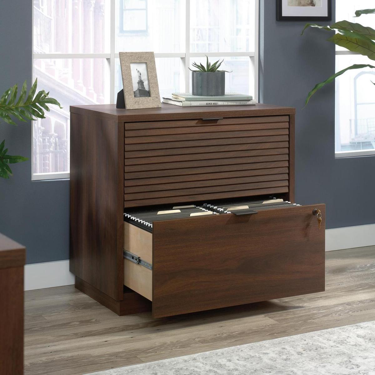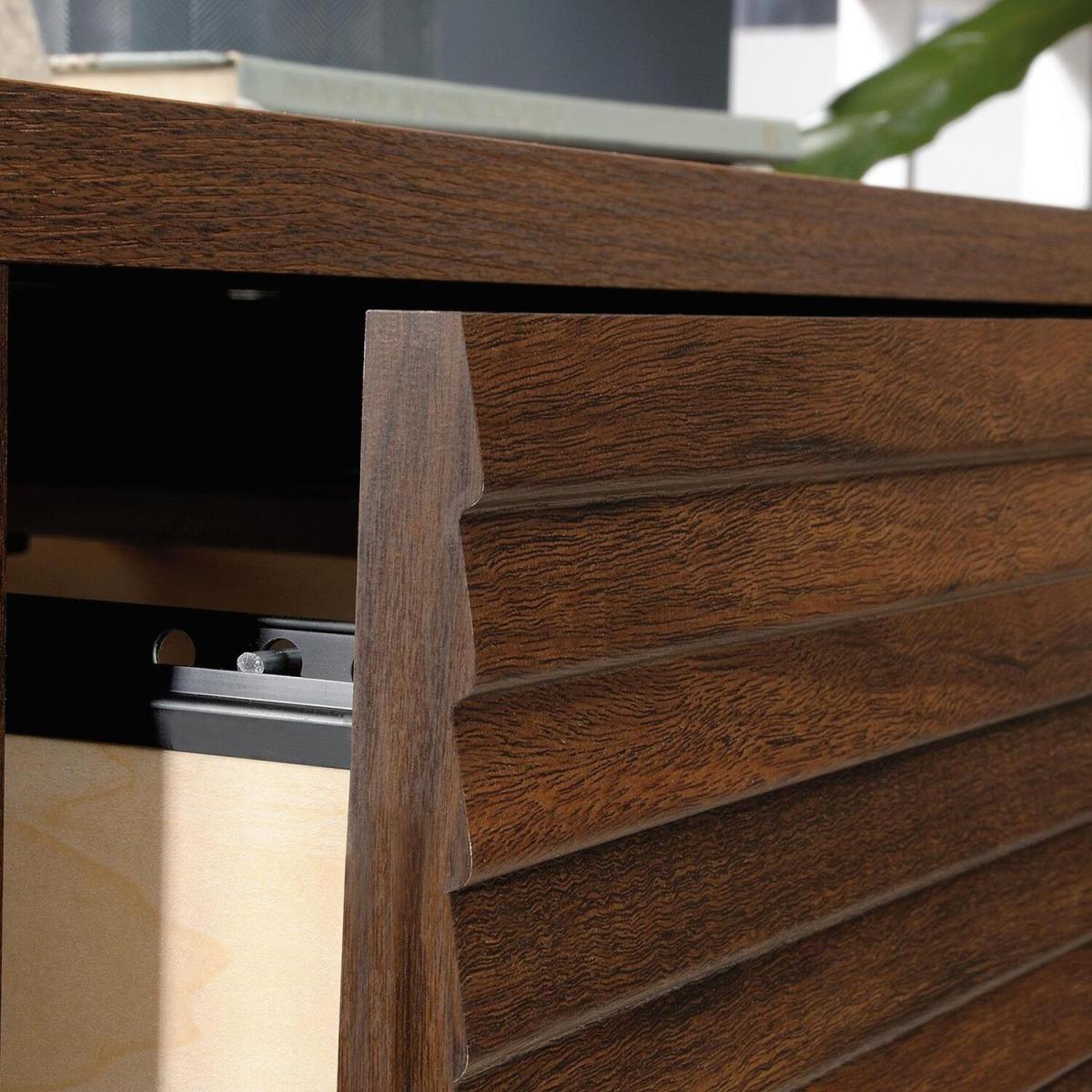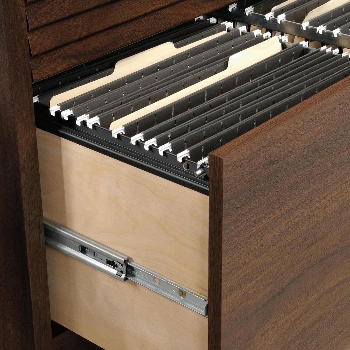 The Teknik Office Elstree Lateral Filer is an ideal option for those that need a stylish office solution for their home office. With its louvre-style detailing and finished in a stunning spiced mahogany effect, you can be sure of an ideal match for all decorative interiors and tastes. It has two lockable drawers to ensure your documents are kept secure while the patented safety mechanism allows only one drawer to open at a time. Both filing drawers feature full extension slides to hold letters or legal size hanging files. The generous top surface provides additional space for the storage of your display items. This filer has a patented T-lock drawer system which makes for a quick and easy assembly. It also has a 360 degree finish, for effortless and versatile placement anywhere within your home or office working area.