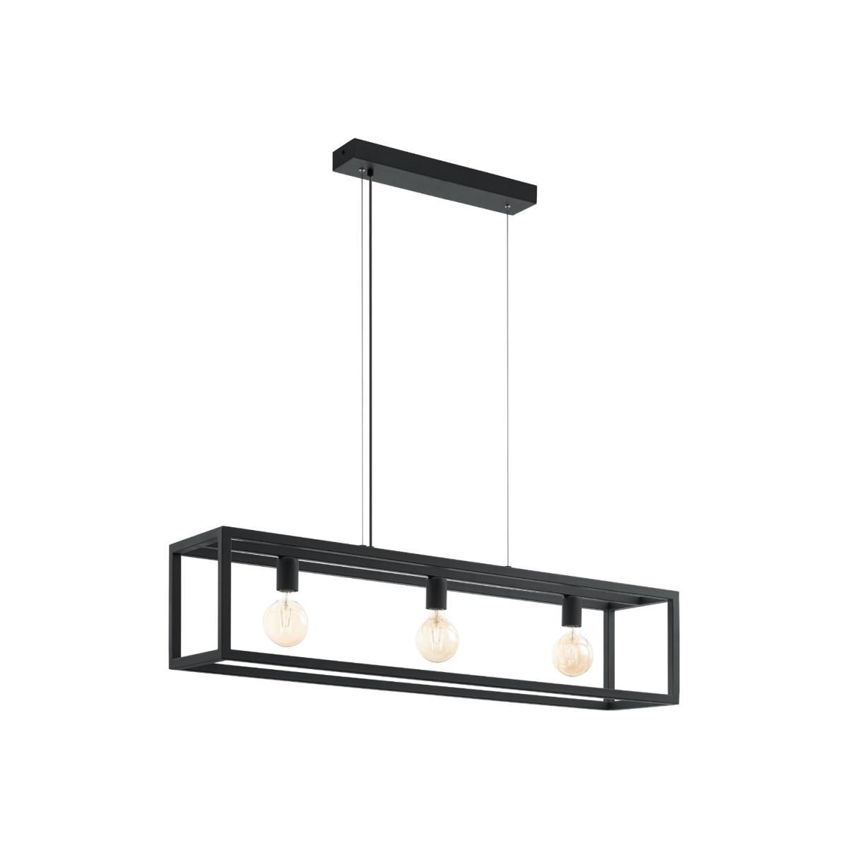 Stylish 3 light ceiling pendant with black suspension box. Combine modern and retro with the Elswick 3 light black box ceiling pendant. Featuring matt black finish, the box is suspended from a slim ceiling plate and height adjustable at time of installation. Complete the look with Pagazzi E27 vintage bulbs. Ideal for in any kitchen, dining room or hallway. We think this light looks best with any of our E27 LED Vintage light bulbs for a rustic, warm glow.