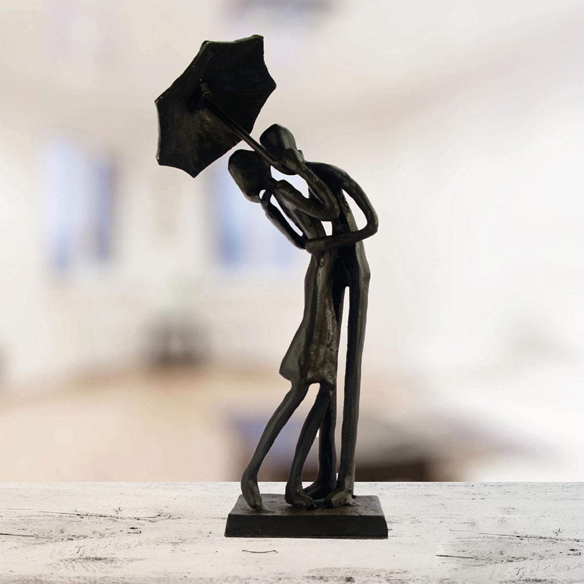 I love how the couple with umbrella sculpture brings a charming, romantic touch to outdoor or porch settings. Its cast iron finish adds durability and a vintage feel, making it ideal for gardens or covered patios. For interiors, it works well as a statement piece in an eclectic or rustic foyer, especially paired with other metal accents or wooden textures. Practical styling tips include positioning it where it can be appreciated up close, perhaps on a console table or sideboard, or outside on a porch near seating to evoke a storybook scene. Its slender, elongated form lends itself to modern or contemporary themes, creating a subtle yet impactful focal point.